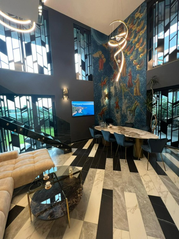 Acest imobil impresionează prin finisajele sale de lux și oferă 5 camere, incluzând parter și mezanin.