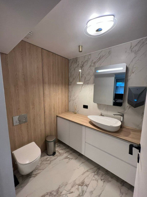 Spațiul dispune de 3 băi, alături de 3 terase generoase. Locuința vine complet mobilată și utilată la standarde înalte.LUX