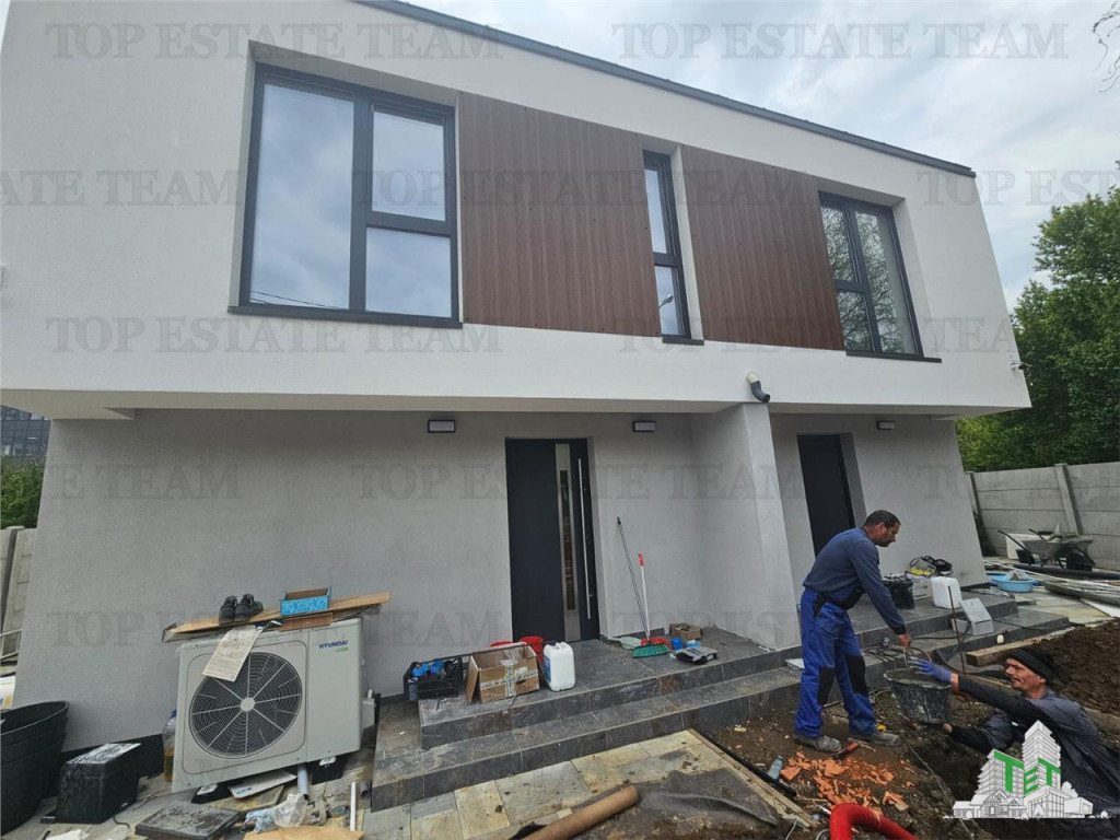 Excelenta prin experienta! Va propunem la vanzare 2 case moderne tip duplex, design mediteranean, pe o strada linistita ferita de zgomot si poluare in zona Giulesti-sectorul 6. Constructie de calitate, proiect respectat ca la carte - exista poze din toate stadiile de constructie pentru a dovedi nivelul finisajelor/materialelor/manoperei. Comparimentare: Living si bucatarie open-space, terasa, baie, hol si camera tehnica pentru parter, 3 dormitoare, 2 bai, hol pentru etaj. Strada asfaltata cu vecini civilizati, zona de case fara posibilitate de a se construi blocuri in imediata apropiere. Vedere panoramica libera spre zona verde de copaci. Detalii tehnice: *Caramida Porotherm Profi fara mortar, caramida cu vata pentru peretele separator. *Izolatie Polistiren ESP 80 grosime 150 mm *Izolatie tavan cu spuma poliuretanica 18-20 cm *Tamplarie PVC Salamader 92 cu geam tripan si bagheta neagra *Tabla faltuita Bilka Dotari: *Sistem panouri fotovoltaice Huawei 5,5 KW *Pompa de caldura Hyundai 10 KW *Boiler de apa calda 280L capacitate de stocare *Incalzire in pardoseala in toate spatiile *Racire prin ventiloconvertoare *Poarta auto cu deschidere electrica *Camere supraveghere videointerfon *Termostate reglare temperatura pentru fiecare camera *Prize si intrerupatoare premium cu touch si usb,usb C *Sistem automat irigatie gazon Program de vizionare flexibil, inclusiv seara sau weekend (avem cheile proprietatii). 2 locuri de parcare prevazute in curte. Vila se vinde pentru pretul de 195000 EURO (200000 EURO optiunea cu teren mai mare 200mp), nu se adauga TVA. Oferim consultanta gratuita pentru obtinerea de credit ipotecar. Tranzactioneaza cu noi si primul transport de mobila este gratuit in Bucuresti si Ilfov! Oferta apartine agentiei Top Estate Team (www.tet.ro)