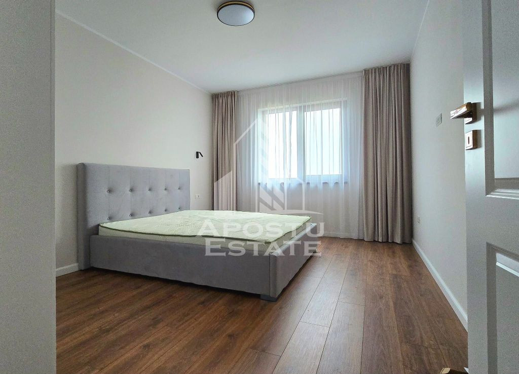 Apostu Estate va propune spre inchiriere o jumatate de duplex spatios si modern, cu o suprafata utila de 140 mp, situat intr-o zona linistita si accesibila. Ideal pentru o familie numeroasa sau pentru cei care doresc un spatiu generos. Detalii proprietate: Camere: 5 1 living mobilat minimalist 4 dormitoare din care 2 mobilate Bai: 3, complet mobilate Dressing: 1 Bucatarie si bai: Complet mobilate si utilate Masina de spalat vase Masina de spalat rufe Combina frigorifica Plita electrica Cuptor electric Hota Confort termic: Incalzire in pardoseala si centrala termica Locuri de parcare: 3 Curte libera: 200 mp, ideala pentru relaxare si activitati in aer liber Conditii financiare: Chirie: 850 €, Garantie: Echivalentul a doua chirii 1700€ Contract: Minim 1 an Vecinatati: Profi, Lidl, Kaufland, scoala, dispensar, benzinarie ESO. Aceasta proprietate este perfecta pentru cei care cauta un camin confortabil si bine echipat intr-o locatie convenabila. Oferta ID CP2106796