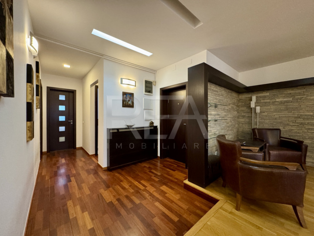 R.E.A. Imobiliare Duplex cu 5 camere, semidecomandat, mobilat si utilat, situat la etajele 2 si 3 din 5, într-un bloc construitctie 2007, in cartierul Herastrau, la 2 minute de mers pe jos de Parcul Herastrau si Soseaua Nordului, cu acces rapid către aeroport, restaurante gourmet si școli internaționale. - Suprafata totala de 189,67 mp: 152,31 mp utili+ 4 balcoane+ casa scarii din interiorul apartamentului. - Configuratie: 4 dormitoare, living, bucatarie, 3 holuri, 2 dressing-uri, 3 bai si 4 balcoane. - Incalzire prin calorifere, centrala prorpie. - 2 Locuri de parcare subterana incluse in pret. Acces rapid la transportul public: 12 minute de mers pe jos pana la Metrou Aurel Vlaicu. Pentru detalii și vizionări, contactați-ne specificând codul de identificare P9247. Id intern: P9247