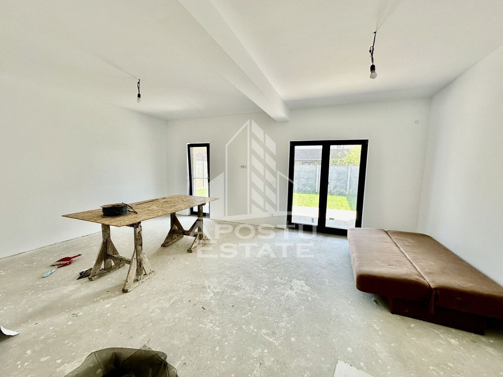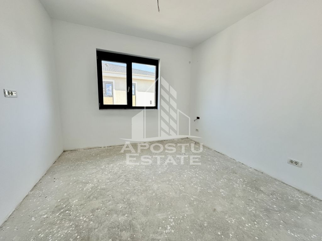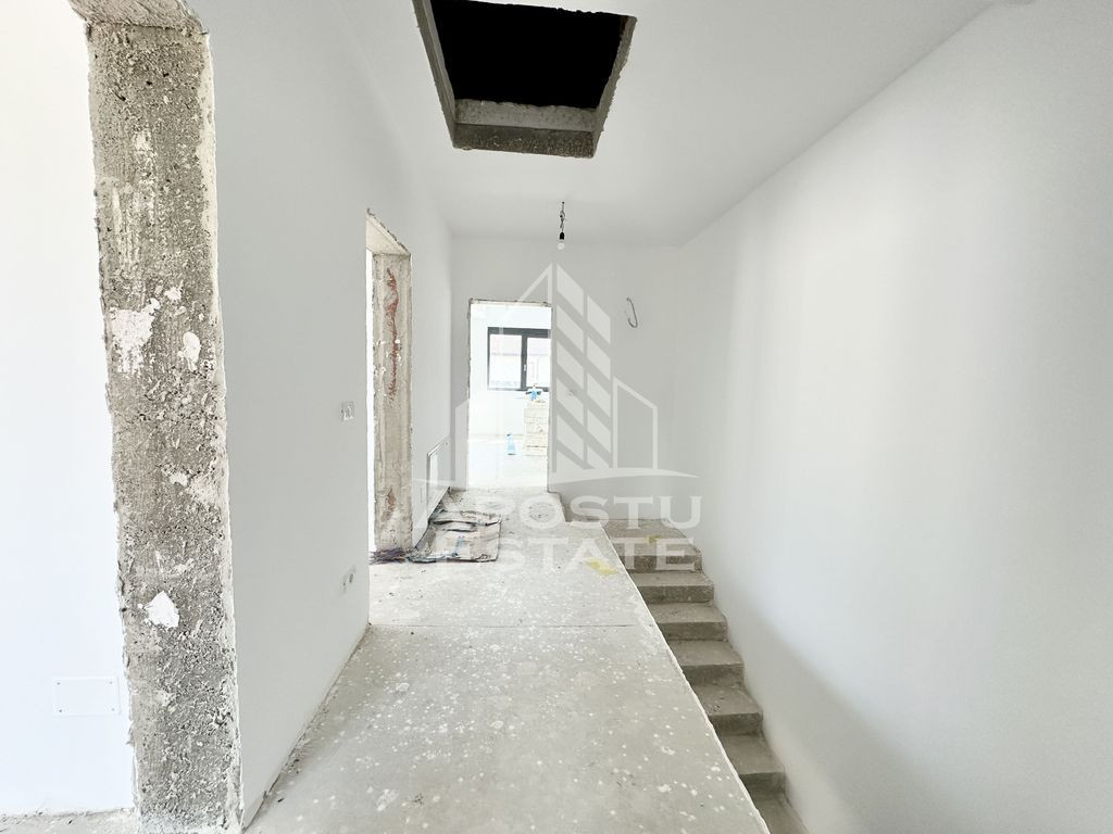 APOSTU ESTATE va ofera spre vanzare un duplex cu 4 camere, finalizat pe exterior si la gri pe interior in vatra satului din Giroc. Se intinde pe o suprafata de 136 mp utili, iar terenul aferent este de 306 mp. Zidaria este realizata din caramida Porotherm cu izolatie de 10 cm. Duplexul este alipit, fiecare jumatate are fundatie si zid propriu intre case si izolatie cu polistiren extrudat. Podul este izolat cu spuma poliuretanica, iar acoperisul este din tigla. Dispune de toate utilitatile. Geamurile sunt tripan. Casa se vinde la alb. Compartimentare: parter - hol acces - baie cu geam - spatiu depozitare - living open space cu bucataria - terasa exterioara etaj - hol compartimentare - dormitor matrimonial cu dressing si baie proprie - 2 dormitoare - baie Pretul este 195.000 euro usor negociabil Va asteptam cu drag la o vizionare! CP 2112960