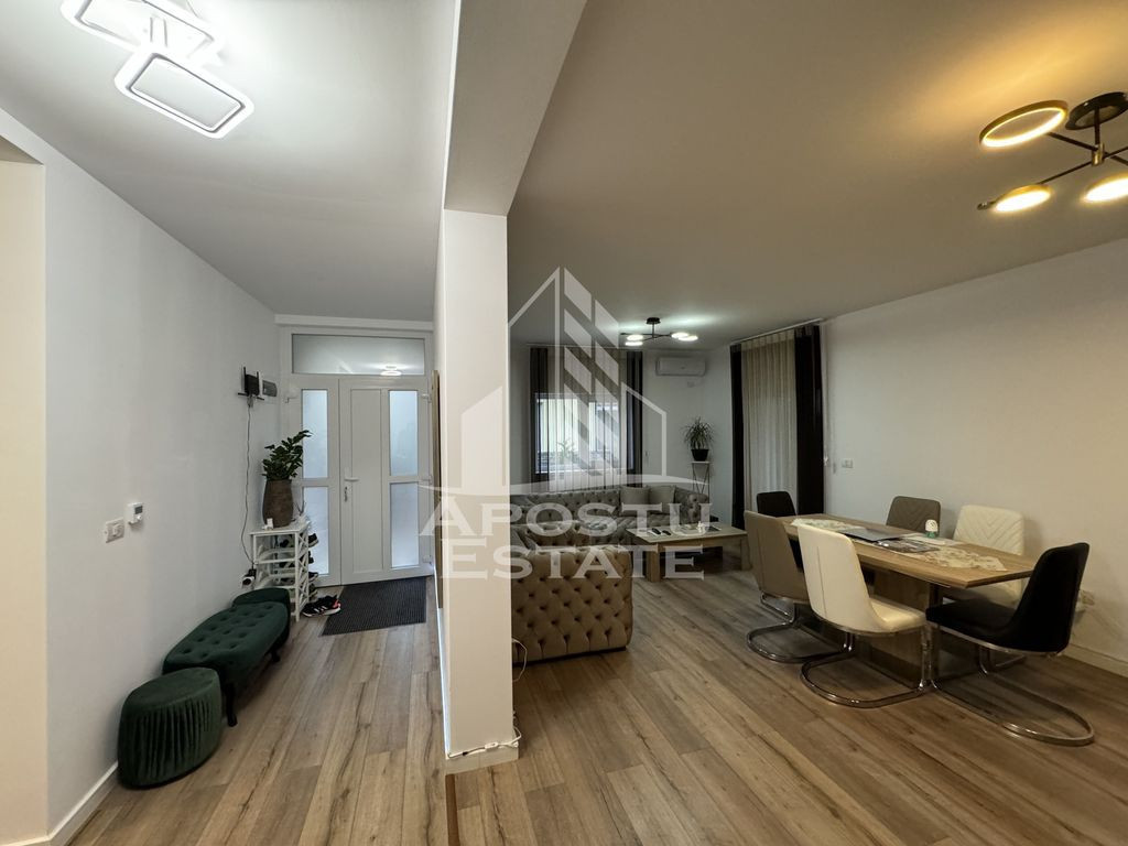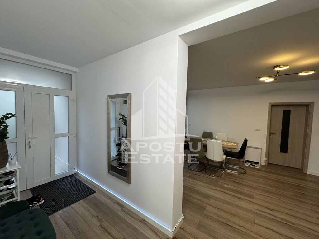 APOSTU ESTATE va propune spre vanzare o casa de tip duplex situata in Mosnita Noua. In cartier Europa, la 50 m de asfalt. Locatia imobilului se potriveste perfect celor ce isi doresc sa se detaseze de agitatia orasului, dar si sa ramana conectati la punctele principale de interes din Mosnita, fiind situata la 10-15 minute de mers pe jos, de Lidl, Penny, Fun Shop Park si altele. Drumul de acces este asfaltat, iar pentru o portiune de 50 m este pietruit. Proprietatea se intinde pe un teren de 300mp. Imobilul dispune de 93 mp utili + terasa de 15 mp + 40 mp spatiu neamenajat in pod si este compartimentat astfel: - hol acces. - living - bucatarie inchisa - baie cu dus, walk-in shower - doua dormitoare dintre care unul cu dressing si baie proprie - acces in pod, de pe terasa, unde avem un spatiu de 50 mp - terasa acoperita, inchisa cu sticla, dotata cu draperie programabila prin aplicatia mobila Toate finisajele sunt realizate mecanizat cu produse de calitate superioara, atent creionate. Se vinde exact cum se vede in imagini, exceptand aparatul de cafea, statia de Cleaning si obiectele personale. Detalii tehnice: Regim de inaltime Parter + pod - constructie realizata in anul 2021 din caramida de 25 cm izolata cu polistiren de 10cm EPS 80, decorativa siliconata. - pereti despartitori complet din caramida tencuiti mecanizat, finisati cu glet si vopsea lavabila - placa de beton peste parter. - acoperis clasic cu tigla si astereala. - peretele comun este din caramida de 30 cm. - geamuri termopan cu 3 sticle, pentru o izolare fonica si termica superioara, foarte mari si luminoase. - usa acces PVC - usi interioare Celulare - centrala proprie pe gaz, sistem de incalzire prin pardoseala pe toata suprafata casei. - termostat de ambient in fiecare camera. - aparataje modulare - toate luminile din casa se pot controla prin aplicatie mobila - terasa este inchisa complet cu sticla, dar se poate deschide pe ambele laturi - toate ferestrele dispun de plase pentru insecte, inclusiv terasa. Bucataria dispune de : Masina de spalat vase(Whirlpool) frigider side by side Samsung , accesorii smart, cuptor (Whirlpool) cuptor cu microunde incorporat(marca Samsung). Mobilierul a fost facut la comanda, folosindu-se eficient fiecare spatiu, dispune si de leduri ambientale. Amenajari exterioare : - alee pietonala perimetrala din beton amprentat - acces auto un loc de parcare in interior si unul in exterior - gazon - braduti ornamentali - pietre ornamentale - zona betonata in partea din spate, pentru gratar. - sistem video de supraveghere si in curte si casa, cu stocare in Cloud. Utilitati : curent, apa de la retea, fosa septica , gaz, internet prin fibra optica, cablu Tv. Pentru mai multe detalii nu ezitati sa ne contactati! Acceptam orice fel de credit bancar. Oferim consultanta si solutii financiare prin colaboratorii nostri pentru a obtine cel mai avantajos credit Ipotecar sau Noua Casa. Va asteptam cu drag la o vizionare chiar astazi! ID intern : CP2117420