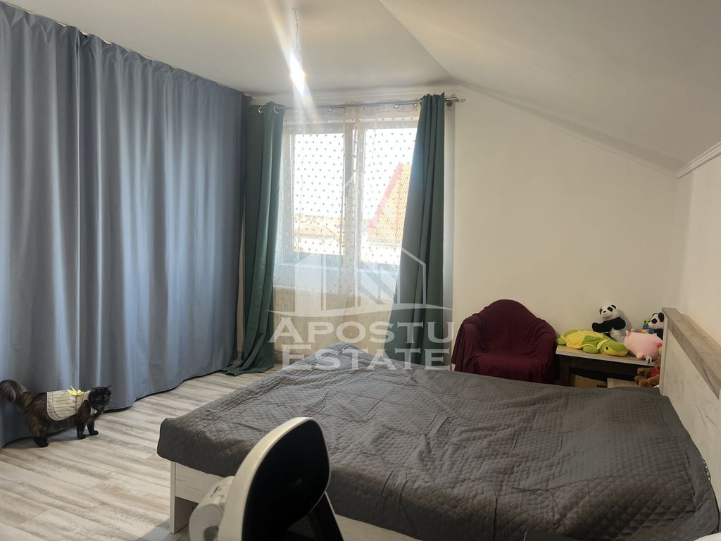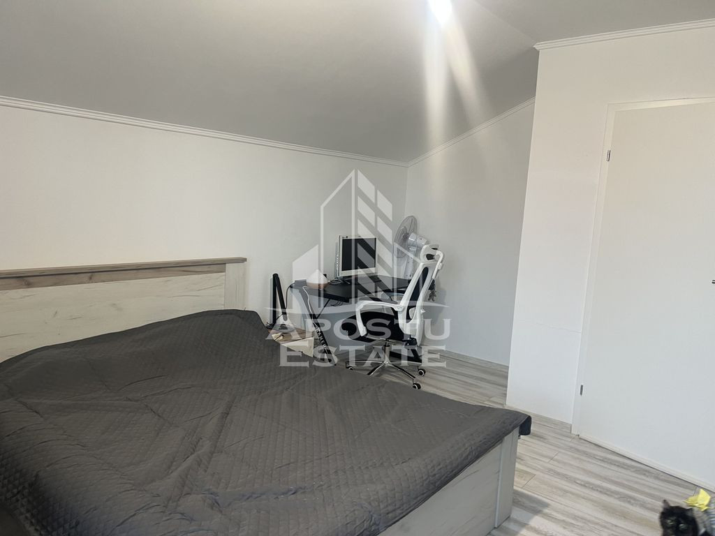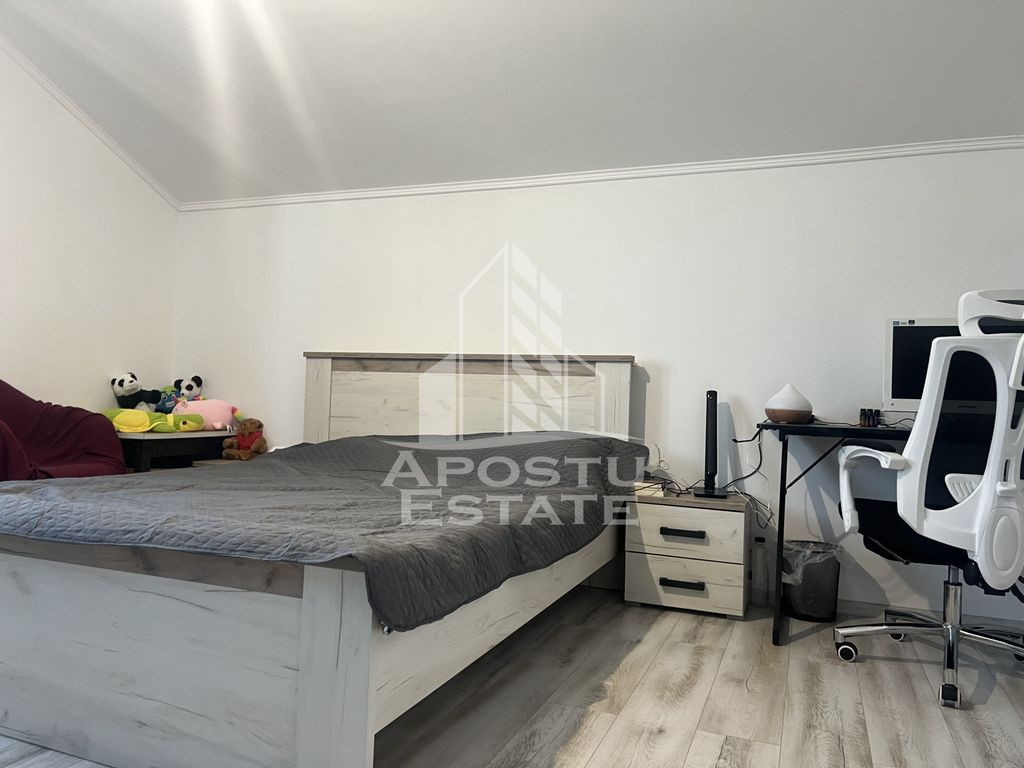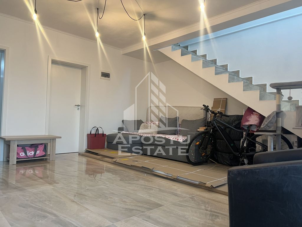 Agenția Imobiliară APOSTU ESTATE vă propune spre vânzare o jumătate de duplex practică și bine compartimentată, ideală pentru o familie care își dorește confort și intimitate într-o zonă liniștită, in Sanandrei. Proprietatea are o suprafață utilă de 85 mp, este amplasată pe un teren de 222 mp și este locuită. Compartimentare: • Parter: Living spațios, bucătărie închisă complet mobilata și baie cu cabina de dus; • Etaj: 2 dormitoare, baie cu cada, dressing generos integrat în unul dintre dormitoare. Dotări și facilități: • Încălzire prin centrală termică Ariston • Fosa septică funcțională – canalizarea publică nu este disponibilă momentan • Apă asigurată prin foraj propriu • Parțial mobilată – perfectă pentru a vă pune propria amprentă asupra locuinței Detalii importante: • Construcție solidă, ideală atât ca locuință permanentă, cât și ca investiție • Spații bine compartimentate, optimizate pentru confortul zilnic Această proprietate este potrivită pentru cei care caută o casă cochetă, bine gândită și aproape de natură, oferind toate facilitățile necesare pentru un trai confortabil. Vă invităm cu drag la o vizionare pentru a descoperi personal avantajele acestei locuințe! ID Intern: CP2519798!