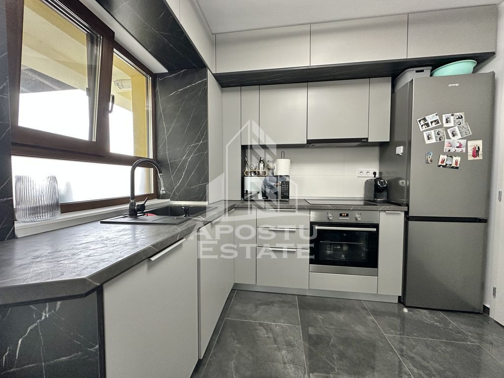 APOSTU ESTATE va propune spre vanzare un duplex situat in Giroc - Calea Urseni. Locatia imobilului se potriveste perfect celor ce isi doresc sa se detaseze de agitatia orasului. In apropiere sunt magazine si supermarket-uri precum Profi, Mega Image, scoala si gradinita la o distanta de 5 minute, acces facil la mijloace de transport în comun, distanta pana in statie este de aproximativ 3 minute. Imobilul dispune de 76 mp utili, este amplasat pe un teren de 150 mp, se vinde complet mobilat si utilat, precum se observa in imagini si este compartimentat astfel: Parter: - hol acces. - living. - bucatarie inchisa. - baie cu geam si dus. - camera tehnica. - terasa amenajata. Etaj: - hol acces - 2 dormitoare. - baie cu geam si cada. - acces in pod. Detalii tehnice: Regim de inaltime Parter + Etaj + Pod. - constructie realizata in anul 2023 din caramida Porotherm de 30 cm. - izolata cu polistiren de 10cm EPS 85. - pereti despartitori complet din caramida tencuiti mecanizat finisati cu vopsea lavabila alba. - placa de beton peste parter izolata cu polistiren de 20 cm EPS 80. - acoperis de tigla. - geamuri termopan cu 3 sticle pentru izolare atat fonica cat si termica superioara foarte mari si luminoase dotate cu site si jaluzele. - mobilier de bucatarie de calitate superioara, realizat pe comanda. - usa acces de termopan cu geam de sticla securizata usi interioare Porta Doors. - centrala proprie pe gaz sistem eficient de incalzire in pardoseala cu termostat ambiental separat pentru fiecare incapere. - aparataje modulare Gewis. - aparat pentru aer conditionat. - terasa acoperita special amenajata cu loc pentru luat masa si relaxare. Utilitati: curent, apa de la retea, canalizare, gaz, internet prin fibra optica, cablu Tv. Pentru mai multe detalii nu ezitati sa ne contactati! Acceptam orice fel de credit bancar. Oferim consultanta si solutii financiare prin colaboratorii nostri pentru a obtine cel mai avantajos credit Ipotecar sau Noua Casa. Va asteptam cu drag la o vizionare chiar astazi! CP2768450
