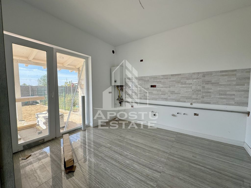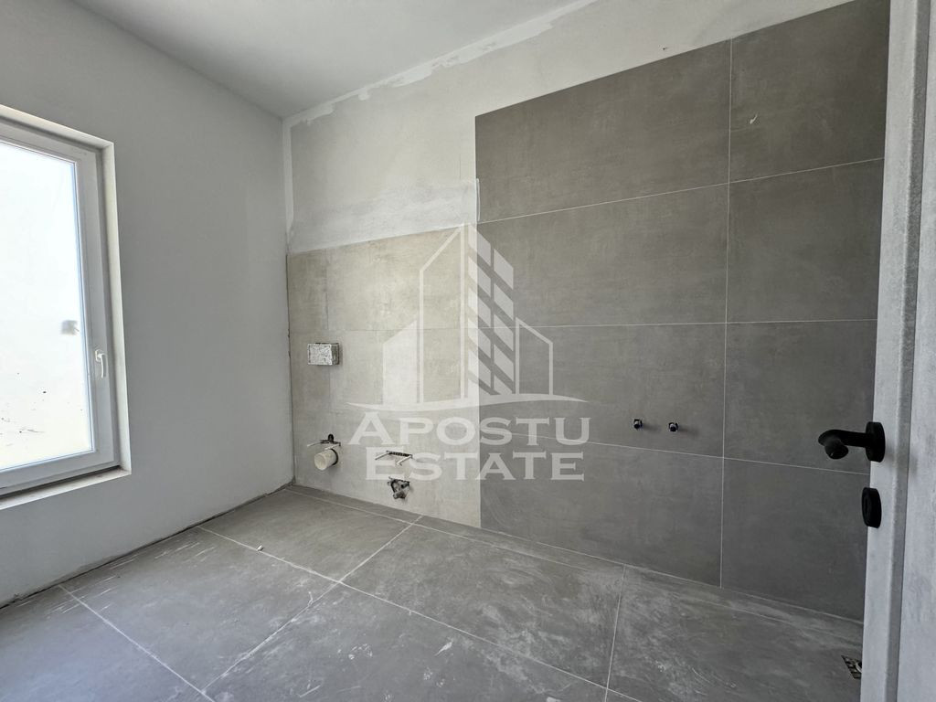 APOSTU ESTATE va propune spre vanzare un duplex situat in Giroc. Locatia imobilului se potriveste perfect celor ce isi doresc sa se detaseze de agitatia orasului. In apropiere sunt magazine si supermarket-uri precum Profi, Mega Image, Penny, Lidl, scoala si gradinita la o distanta de 20 minute. Proprietatea se intinde pe un teren de 250 mp imprejmuit cu gard de beton. Imobilul dispune de 100 mp utili + terasa de 17 mp si este compartimentat astfel: Parter: - hol acces - living si dinning - bucatarie inchisa - baie cu geam si dus - spatiu pentru depozitare sub scara - terasa acoperita Etaj: - hol acces - 3 dormitoare - baie cu geam si cada Imobilul este in curs de finalizare, se vinde complet finisat si pregatit pentru noii proprietari atat in interior cat si in exterior. Termenul de predare fiind in luna octombrie 2025. Disponibila doar o jumatate. Detalii tehnice: Regim de inaltime Parter + Etaj + Pod. - constructie realizata in anul 2024 din caramida Porotherm de 30 cm. - izolata cu polistiren de 10cm EPS 80 decorativa siliconata. - pereti despartitori complet din caramida (fara rigips) tencuiti mecanizat finisati cu vopsea lavabila alba. - placa de beton peste parter si peste etaj. - acoperis de tigla. - geamuri termopan cu 3 sticle pentru izolare atat fonica cat si termica superioara foarte mari si luminoase. - usa acces de termopan cu geam de sticla securizata usi interioare Porta Doors. - centrala proprie pe gaz sistem eficient de incalzire in pardoseala cu circuit separat pentru fiecare incapere. - aparataje modulare Gewis. - finisajele sunt la alegerea noului proprietar (gresie, faianta, parchet, usi, obiecte sanitare). Amenajari exterioare: beton amprentat in partea din fata, acces auto doua locuri de parcare, alee pietonala perimetrala, poarta auto si poarta pietonala pregatite pentru automatizare. Utilitati: curent, apa de la retea, fosa septica, gaz, internet prin fibra optica, cablu Tv. Pentru mai multe detalii nu ezitati sa ne contactati! Acceptam orice fel de credit bancar. Oferim consultanta si solutii financiare prin colaboratorii nostri pentru a obtine cel mai avantajos credit Ipotecar sau Noua Casa. Va asteptam cu drag la o vizionare chiar astazi! CP2139754