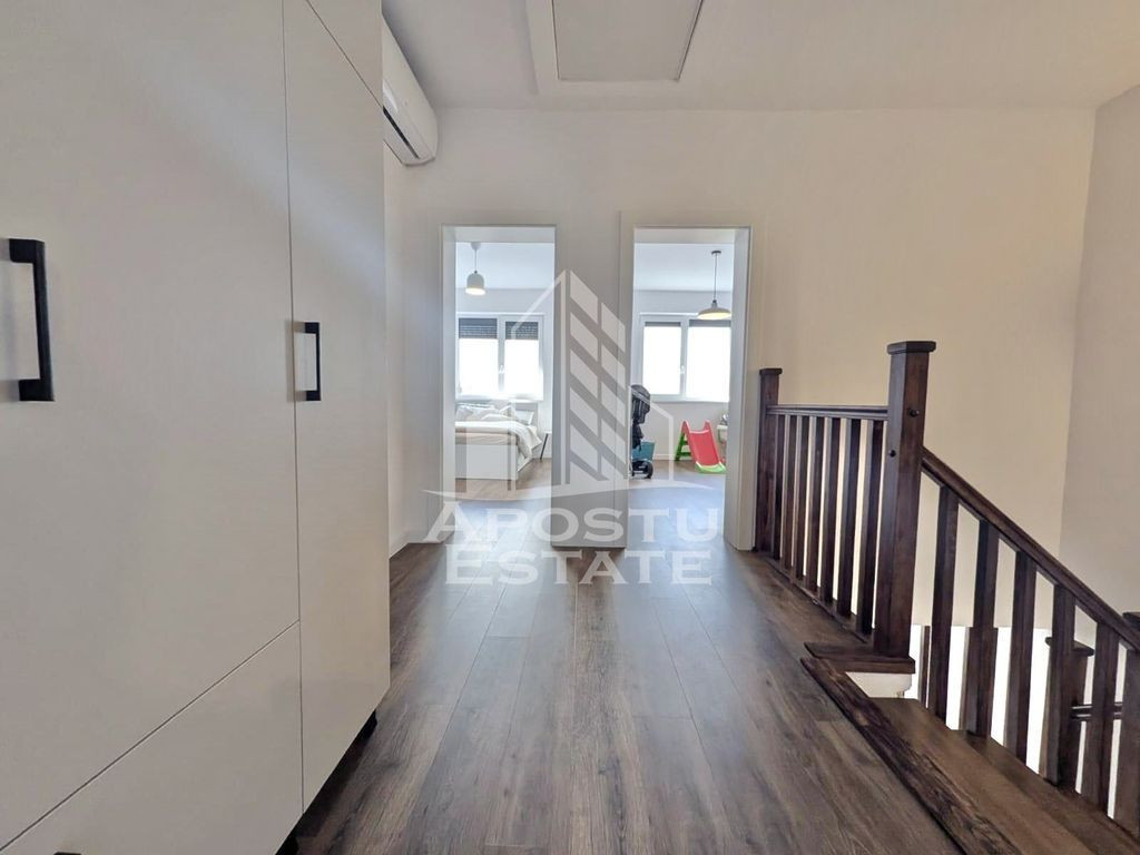 APOSTU ESTATE va propune spre vanzare un duplex situat in Giroc. Locatia imobilului se potriveste perfect celor ce isi doresc sa se detaseze de agitatia orasului. In apropiere sunt magazine si supermarket-uri precum Lidl, Penny, Profi, Mega Image, scoala si gradinita la o distanta de 5 minute. Imobilul dispune de 101 mp utili, este amplasat pe un teren de 250 mp, se vinde complet mobilat si utilat, precum se observa in imagini si este compartimentat astfel: Parter: - hol acces. - living spatios. - bucatarie inchisa. - baie cu geam si dus. - terasa. Etaj: - hol acces - 3 dormitoare. - baie cu geam si cada. - acces in pod. Detalii tehnice: Regim de inaltime Parter + Etaj + Pod. - constructie realizata in anul 2025 din caramida Porotherm de 30 cm. - izolata cu polistiren de 10 cm EPS 85. - pereti despartitori complet din caramida tencuiti mecanizat finisati cu vopsea lavabila alba. - placa de beton peste parter. - acoperis de tigla. - geamuri termopan cu 3 sticle pentru izolare atat fonica cat si termica superioara foarte mari si luminoase dotate cu site si jaluzele. - mobilier de bucatarie de calitate superioara, realizat pe comanda. - usa acces de termopan cu geam de sticla securizata, usi interioare Porta Doors. - centrala proprie pe gaz sistem eficient de incalzire in pardoseala. - aparataje modulare Gewis. - aparat pentru aer conditionat. - terasa acoperita. Utilitati: curent, apa de la retea, canalizare, gaz, internet prin fibra optica, cablu Tv. Pentru mai multe detalii nu ezitati sa ne contactati! Acceptam orice fel de credit bancar. Oferim consultanta si solutii financiare prin colaboratorii nostri pentru a obtine cel mai avantajos credit Ipotecar sau Noua Casa. Va asteptam cu drag la o vizionare chiar astazi! CP2800250