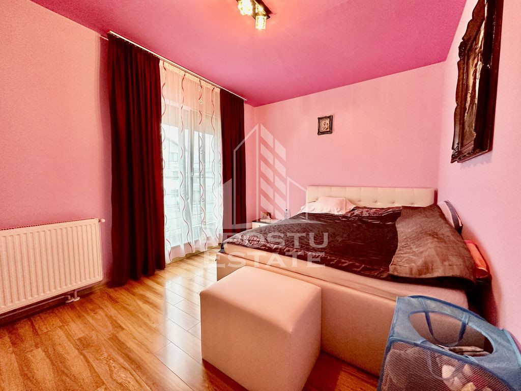 APOSTU ESTATE va ofera spre vanzare un duplex cu 4 camere, situat in zona Planetelor. Casa beneficiaza de o suprafata de 126 mp utili, iar terenul aferent casei este de aproximativ 300 mp. Dispune de toate utilitatile (apa, gaz, curent, canalizare, asfalt, fibra optica, iluminat stradal). Accesul auto automatizat, in curte avand carport. Confortul termic se realizeaza cu ajutorul centralei proprii pe gaz cu incalzire pe calorifere. Geamuri termopan. Zidaria este din caramida Porotherm cu izolatie din polistiren. Peretele comun este dublu si izolat. Dispune de clima. Scarile sunt din lemn masiv. Acoperisul este din tigla, iar podul este izolat cu vata. Se vinde complet utilat si mobilat. Compartimentare: parter - hol acces - baie de servici cu geam - bucatarie inchisa - living + dinning - terasa etaj - hol compartimentare - 3 dormitoare - 2 bai - balcon - pod Pretul este 198.000 euro mobilata, iar nemobilata 195.000 euro Va asteptam cu drag la o vizionare! CP 2064290