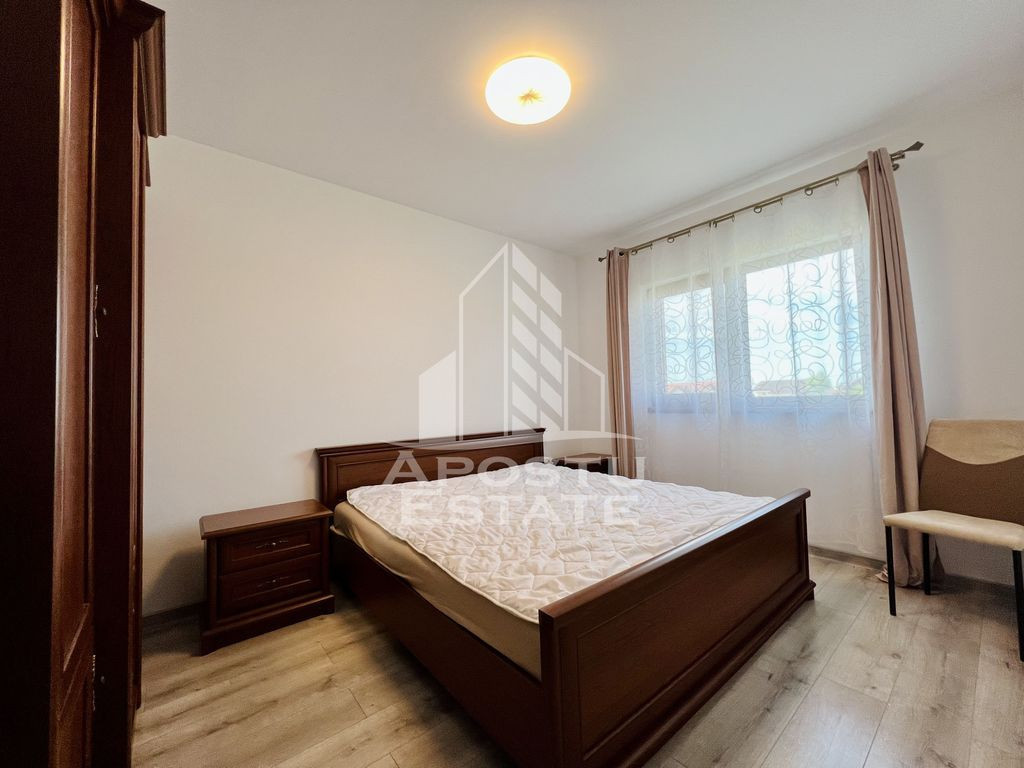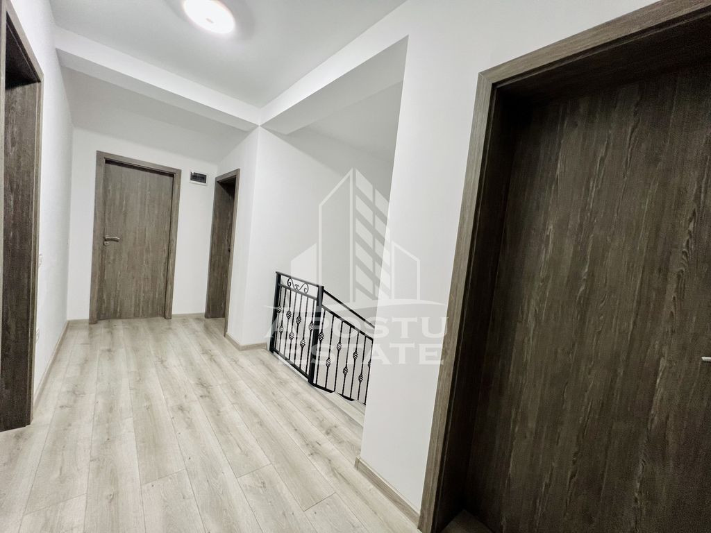 APOSTU ESTATE va propune spre închiriere o jumatate de duplex , cu 5 camere,2 bai,in Dumbravita Ikea. Cu o suprafata utila de 110mp si o suprafata teren de 300 mp,proprietatea dispune de urmatoarea compartimentare: Parter -hol acces -bucatarie cu living open space -baie -camera de birou -terasa acoperita -curte Etaj -3 dormitoare -dressing -baie Duplexul este Pet Friendly Confortul termic se realizeaza prin intermediul centralei proprii si al climei. Va asteptam cu drag la vizionare! ID intern:CP2567137!