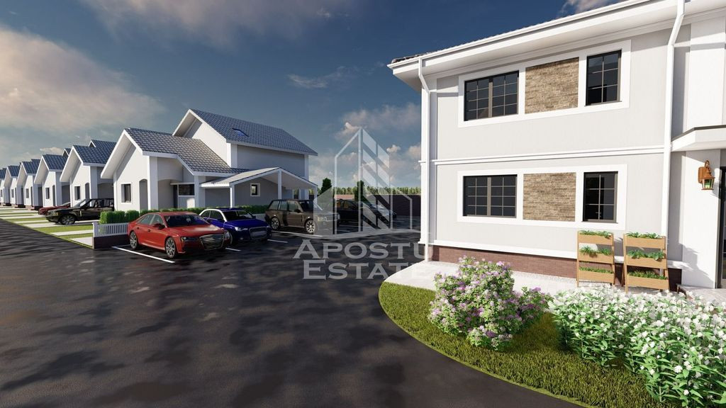 Apostu Estate vă propune spre vânzare un duplex spațios și eficient energetic, situat într-o zonă liniștită. Proprietatea se află pe un teren de 250 mp și dispune de o suprafață utilă de 117 mp, inteligent compartimentată pentru confortul zilnic. Parterul este gândit practic și aerisit, cu zone clar delimitate: • Living cu bucătărie semi open-space; • Baie de serviciu; • Cameră tehnică; • Birou; • Camara. Accesul din living se face către o terasă neacoperită de 15 mp. În fața casei sunt amenajate două locuri de parcare pavate. Etajul oferă intimitate și spațiu generos: • Trei dormitoare, dintre care unul de 17 mp • Baie • Unul dintre dormitoare are spațiu dedicat pentru baie sau dressing, în funcție de preferințele viitorului proprietar Locuința este complet racordată la toate utilitățile (gaz, curent trifazic, apă) și beneficiază de panouri fotovoltaice, pentru un consum energetic eficient și costuri reduse. Duplexul este separat de unitatea alăturată printr-o cămară, oferind intimitate suplimentară între cele două proprietăți. O locuință modernă, economică și bine compartimentată, perfectă pentru o familie care își dorește liniște, eficiență și acces rapid către oraș. Va asteptam la vizionare! ID Intern: CP2547217!