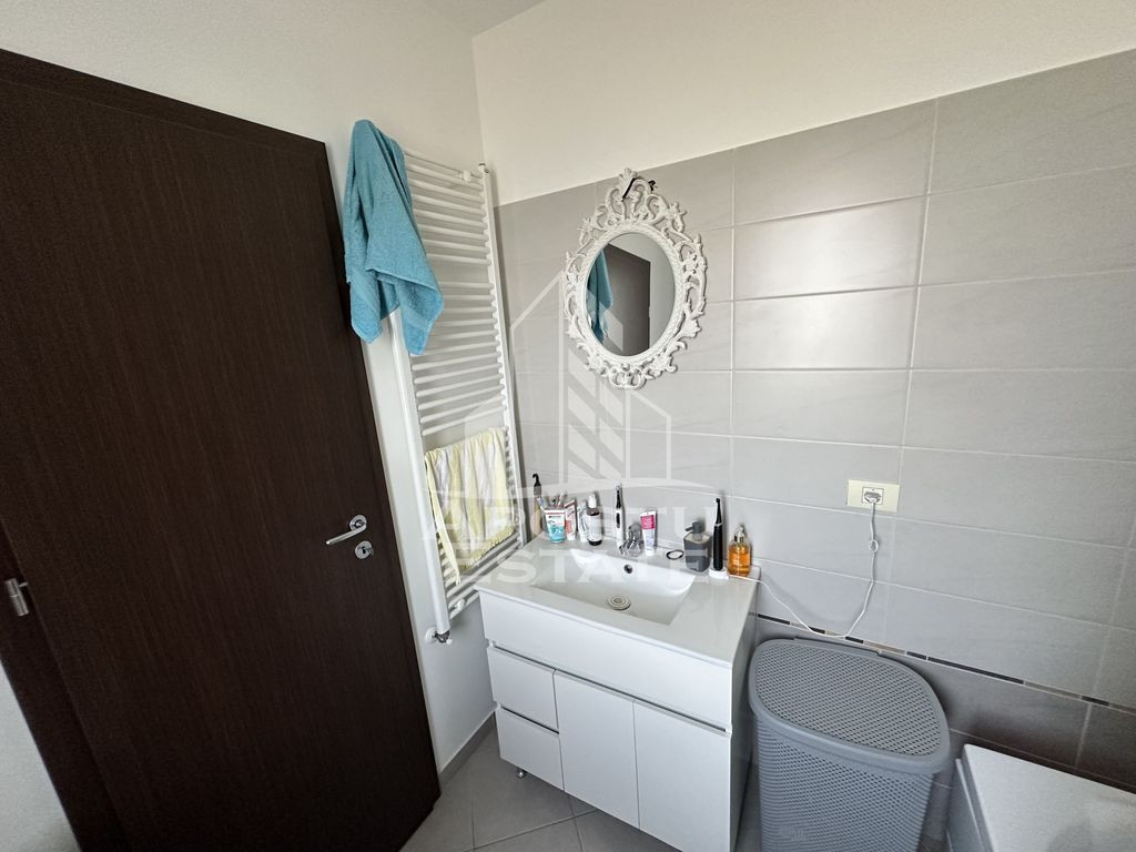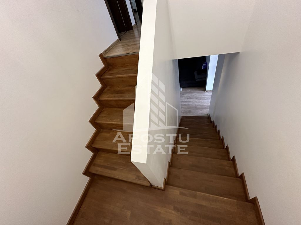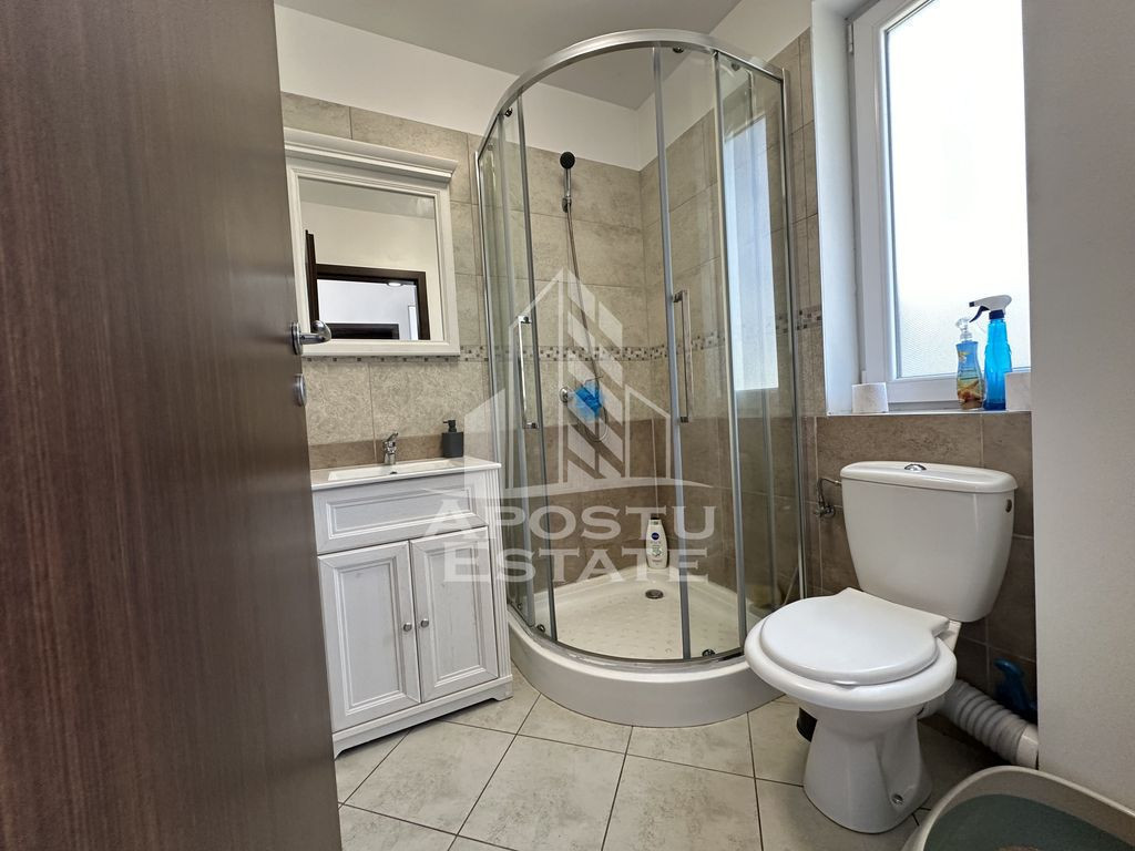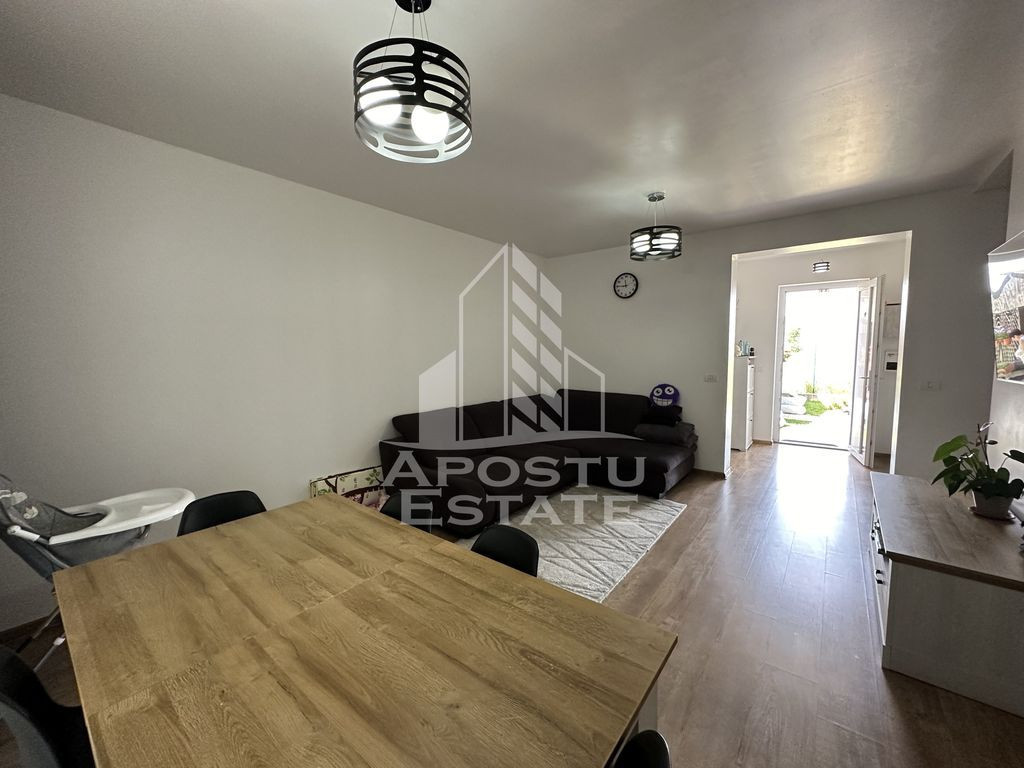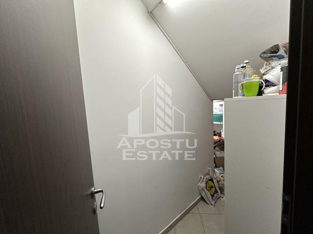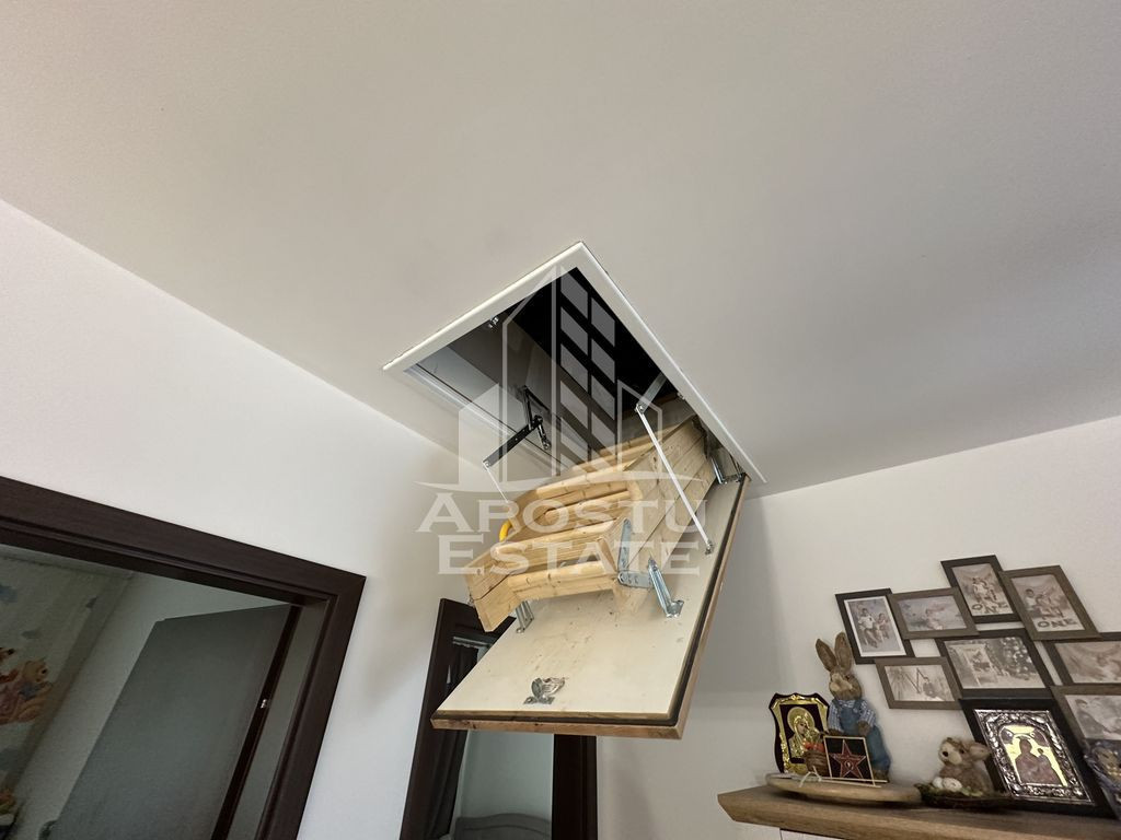APOSTU ESTATE va propune spre vanzare o casa de tip duplex, situata intr-o zona de case deja construite si locuite in Giroc. Locatia imobilului se potriveste perfect celor ce isi doresc sa se detaseze de agitatia orasului. In apropiere sunt magazine si supermarket-uri, scoala si gradinita, statie de autobuz la 10 minute distanta. Drumul de acces spre imobil este asfaltat. Proprietatea se intinde pe un teren de 270 mp imprejmuit cu gard. Imobilul dispune de 112 mp utili, Compartimentare: Parter: - hol acces - birou - baie cu dus - living +. dinning - bucatarie inchisa, cu debara Etaj: - hol acces - 2 dormitoare cu balcon, dintre care unul cu dressing. - dormitor - baie cu cada Imobilul se vinde complet mobilat si utilat, exact cum se vede in imagini. Toate finisajele sunt realizate mecanizat cu materiale de calitate, atent creionate. Detalii tehnice: Regim de inaltime Parter + Etaj + Pod. - constructie realizata in anul 2017 din caramida Cemacom de 25 cm izolata cu polistiren de 10cm EPS 80 decorativa siliconata. - pereti despartitori complet din caramida, tencuiti mecanizat, finisati cu glet si vopsea lavabila alba. - placa de beton peste parter, dar nu si peste etaj. - acoperis clasic compus din astereala, folie anti-condens si tigla ceramica. - geamuri termopan pentru izolare atat fonica cat si termica superioara, foarte mari si luminoase. - usa acces Pvc, - usi interioare Porta Doors. - centrala proprie pe gaz, si calorifere. - aparataje modulare Gewis. - parchet de 8 mm in living si dormitoare. - gresie si faianta in bai. - trepte placate cu lemn triplu-stratificat Amenajari exterioare: pavaj in partea din fata, acces auto doua locuri de parcare, alee pietonala perimetrala pavata, poarta auto. Foisor cu gratar si lavoar si loc pentru ceaun. Utilitati complete: curent, apa de la retea, canalizare, gaz, internet prin fibra optica, cablu Tv. Pentru mai multe detalii nu ezitati sa ne contactati! Acceptam orice fel de credit bancar. Oferim consultanta si solutii financiare prin colaboratorii nostri pentru a obtine cel mai avantajos credit Ipotecar sau Noua Casa. Va asteptam cu drag la o vizionare chiar astazi! CP CP2057370