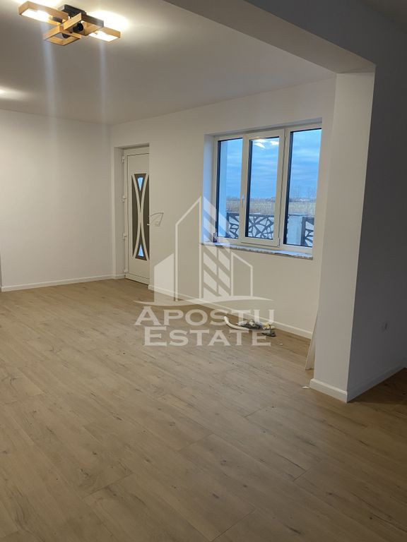 Apostu Estate va ofera spre vanzare Duplex de lux la doar 8 minute de Timisoara. Constructie ridicata pe regim de inaltime P+M ,avand o suprafata utila de 120 mp si teren de 280 mp situata in zona rezidentiala retrasa de agitatia si traficul urban,beneficiind de Padurea Bistra si raul Bega in apropiere. Constructia este realizata la un standard cu adevarat eficient din punct de vedere energetic,confortabil si accesibil in acelasi timp.Acest concept de case eficiente energetic este caracterizat printr-un confort termic si fonic ridicat,temperaturi constante in intregul imobil si costuri de intretinere reduse. Compartimentare Parter: -hol de acces -camera tehnica -living +dining -bucatarie -baie -acces terasa Etaj: -hol de acces -3 dormitoare -baie Date tehince: -Panouri foto-Voltaice Trina de 8kv,cu pompa de caldura Chofu,boiler 150 litri. -Incalzire in pardoseala Purmo -Termostate de ambient in fiecare incapere -Beton amprentat -Tamplarie REHAU TRIPAN -Toate utiliitatiile Va asteptam cu drag la o vizionare chiar astazi!mai multe detalii la telefon.