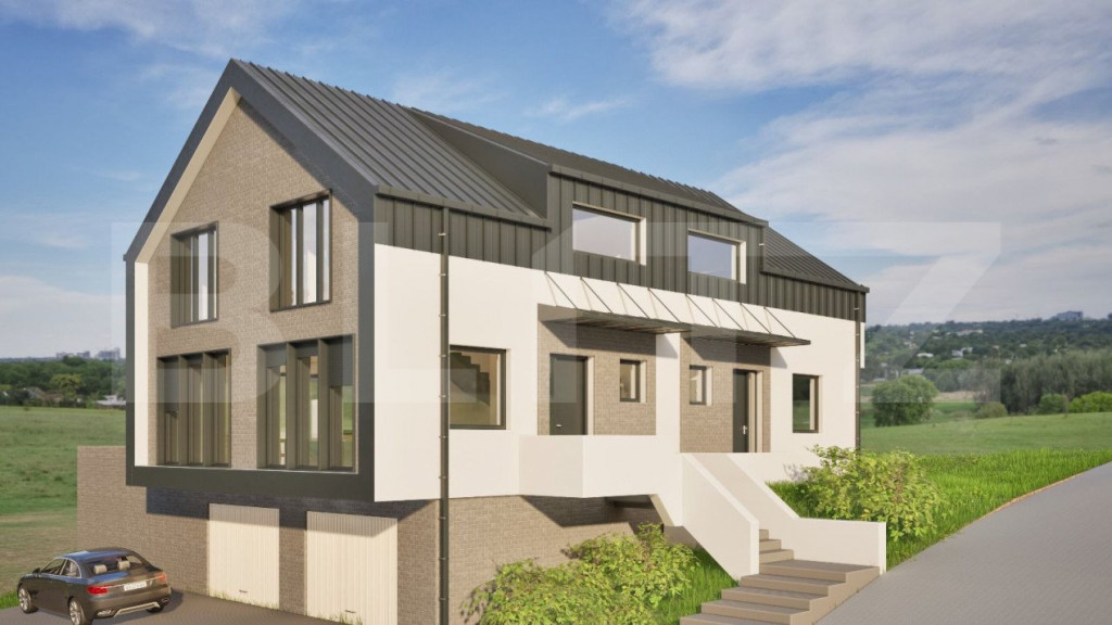 Blitz vă propune spre vânzare un duplex modern situat într-o zonă liniștită, ideală pentru familii, cu o panoramă spectaculoasă asupra peisajului înconjurător. Sunt disponibile ambele unități : Unitatea din față (cu 2 garaje, panoramă spre oraș) – 156 mp utili (inclusiv garaje) + Pod (~30-40 mp utili) la 350.000 Euro negociabil. Unitatea din spate (cu pivniță și cameră tehnică) – 163 mp utili (inclusiv subsol) + Pod (~30-40 mp utili) la 340.000 Euro negociabil. La mansardă înaltă, pentru unitatea din spate se vor amenaja 2 băi, în loc de una. Parcela de teren: 470 mp (inclusiv amprenta casei) + 100 mp drum (50 mp pentru fiecare unitate), drum ce va fi asfaltat în curând, iar Primăria va achiziționa cei 100 mp de la proprietari atunci când va veni să finalizeze lucrările de asfaltare. Predare la stadiul de semifinisat, astfel: 2 maini de glet, lavabil alb, geamuri termopan cu 7 camere, izolație exterioară, centrală termică proprie si Încălzire prin pardoseală, instalatii electrice și sanitare trase pe poziție, acoperiș din tablă, exterior amenajat. Termen de finalizare: Iunie 2025 Ca si puncte de interes, in zona există: grădiniță la doar 50 de metri, scoală gimnazială la 700 de metri, noul mall Rivus la 7 minute distanță cu mașina Dacă sunteți în căutarea unui loc liniștit, aproape de natură și totodată accesibil către punctele de interes din oraș, acest duplex reprezintă o oportunitate deosebită! Pentru mai multe detalii sau o vizionare, vă așteptăm cu drag! Cod ofertă / ID BLITZ: P136958 Id intern: P136958