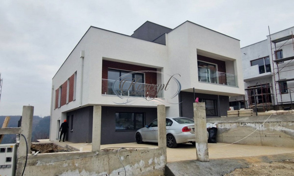 Koncept Imobiliare va ofera spre vanzare un duplex cu panorama spectaculoasa, pe strada Razoare. Imobilul este dispus D+P+1+Terasa, are suprafata utila de 200 mp, fiind amplasat pe o parcela de 270 mp. Dispune de terasa panoramica pe toata suprafata acoperisului si este compartimentat astfel: la demisol openspace de 73,4 mp cu acces pe terasa, la parter - living generos cu iesire pe terasa de 20 mp, bucatarie separata cu loc de servit masa, baie si casa scarii; la etaj - 3 dormitoare, 2 bai, dressing si balcon, pe acoperis este terasa Rooftop de 60 mp cu o panorama foarte frumoasa. Avand o arhitectura cubic-contemporana, compartimentare practica si armonioasa, duplexul acopera toate cerintele unei familii moderne. Materialele de constructie sunt de inalta calitate, dispune de incalzire prin pardoseala, pompa de caldura + 4 kW panouri solare instalate, termosistem de 15 cm. Se preda semifinisat sau se poate discuta pentru predarea la stadiul de finisat. Se recomanda datorita calitatii constructiei, al compartimentarii avantajoase si functionale a imobilului, dar si amplasamentul intr-o zona frumoasa. Pentru informatii suplimentare, pentru programarea unei vizionari sau pentru a afla oferta noastra completa nu ezitati sa ne contactati telefonic, prin e-mail sau la sediul agentiei, pe str. Aviator Badescu nr. 19, Cluj-Napoca. Id intern: P20217