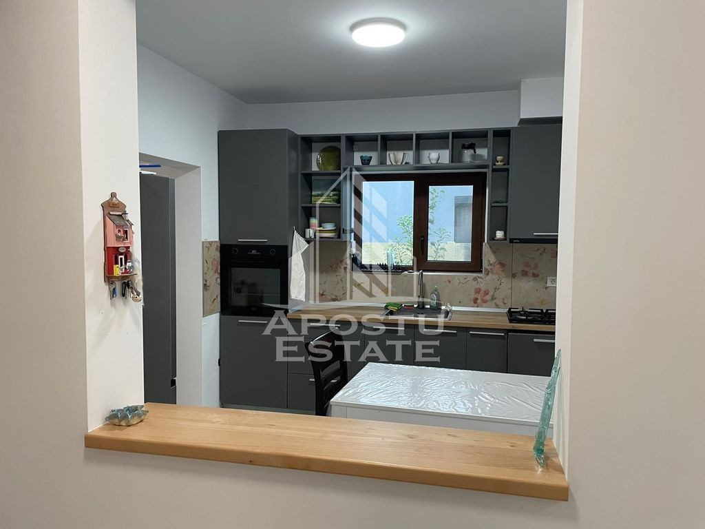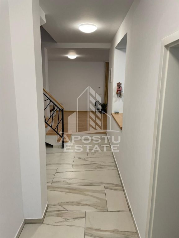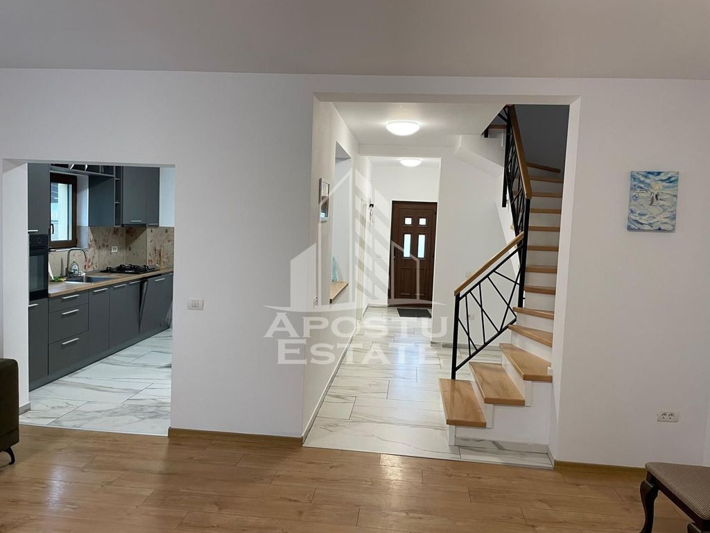 APOSTU ESTATE va propune spre inchiriere un Duplex spatios si elegant, cu 5 camere, situat intr-o zona linistita si bine conectata din Giroc, ideal pentru familii sau persoane care doresc un spatiu generos si confortabil. Suprafata utila: 140 mp Terasa de 15mp acopetita Gradina proprie de 80mp Compartimentare eficienta: La parterul duplexului se afla: Bucatarie complet mobilata si utilata, cu loc de luat masa Living luminos si spatios Camera secundara nemobilata – poate fi amenajata dupa preferinte (birou, dressing, camera copil etc.) Grup sanitar de serviciu dotat cu cabina de dus Terasa acoperita de 15mp La nivelul superior se afla: 3 Dormitoare complet mobilate Baie principala cu cada si geam pentru ventilatie naturala A doua baie cu cabina de dus Confort si facilitati: Centrala termica proprie pe gaz Aer conditionat Doua locuri de parcare in fata duplexului Duplexul l este complet mobilat si utilat Localizare: Zona Giroc – liniste, acces facil spre oras, in apropiere de magazine, scoli si mijloace de transport in comun. Ideal pentru: Familii Cupluri Profesionisti care lucreaza remote sau au nevoie de birou acasa Pret chirie: [1000 euro] Programeaza o vizionare! ID intern: CP2818151