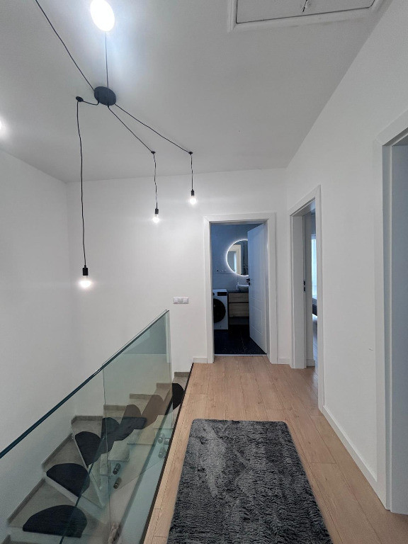 Am placerea de a va oferi spre inchiriere o casa duplex cu 4 camere, bucatarie, 3 bai, in localitatea FLORESTI, zona Iazului, in apropiere de PRINCIPALA DIN AVRAM IANCU. Suprafata utila este de 110 mp, cu un teren de 220 mp. Casa este dispusa pe nivele astfel: parter-hol intrare, living cu bucatarie, camera, baie, iesire pe terasa, etaj 1-hol, dormitor matrimonial cu baie, 2 dormitoare secundare, baie si 2 balcoane. Aceasta este situata in zona linistita, in zona cu spatiu verde. Aceasta are construita din caramida, acoperis de tigla clasica, fundatie de beton, izolatie exterioara. Imobilul mai are si alte dotari precum centrala proprie, ferestre de termopan cu 3 sticle, usa metalica, terasa, frigider, aragaz, masina de spalat. Imobilul este mobilat si utilat lux. Daca va place aceasta oferta sau pentru alte oferte nu ezitati sa ne contactati telefonic sau la sediul nostru EDIL Floresti, Str. Eroilor, Nr. 25, Ap. 15 (et. 1), Floresti. CACJ245216