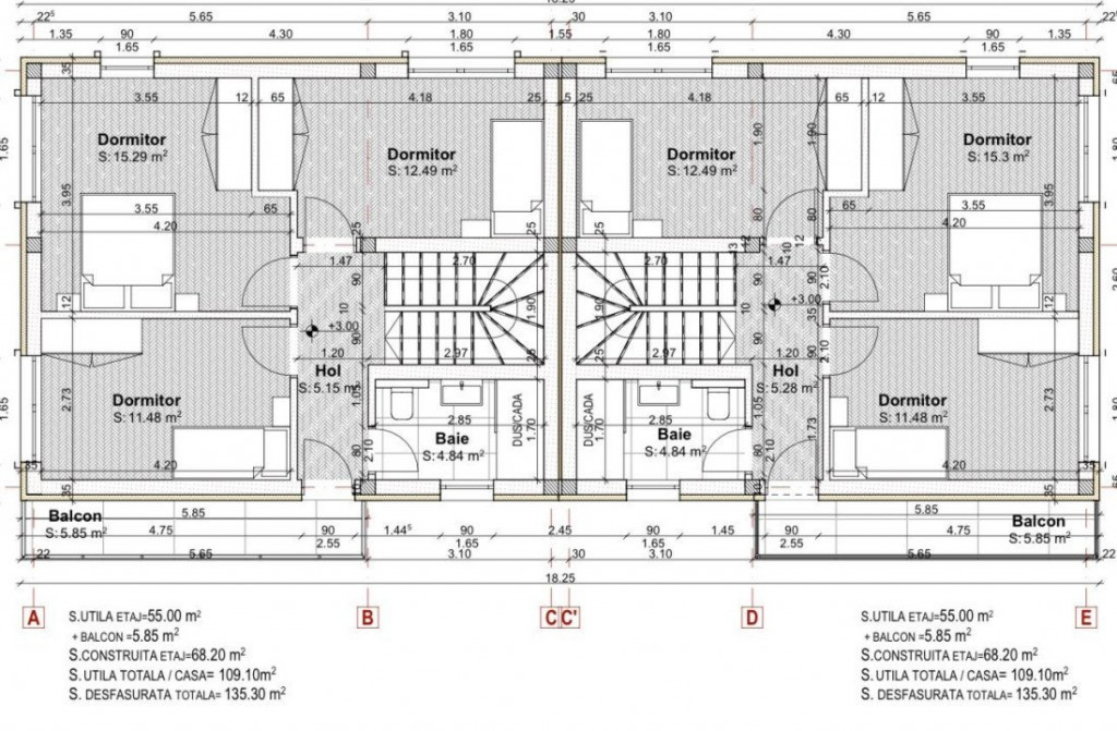 Duplex de vanzare, 100 mp, 250 teren, semifinisat, P+E, Gila