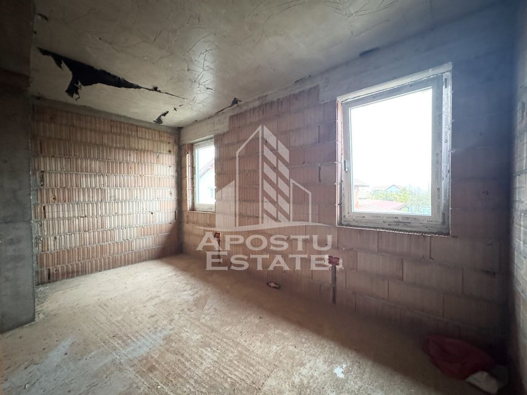 APOSTU ESTATE va propune spre vanzare un duplex situat in Giroc. Drumul de acces este asfaltat. Locatia imobilului se potriveste perfect celor ce isi doresc sa se detaseze de agitatia orasului. In apropiere sunt magazine si supermarket-uri precum Profi, Lidl, scoala si gradinita la o distanta de maxim 10 minute. Proprietatea dispune de un teren de 200 mp imprejmuit cu gard de beton. Imobilul are suprafata de 110 mp utili + terasa de 15 mp. Compartimentare: Parter: - hol acces - dormitor/birou - living si dinning - bucatarie inchisa sau open space - baie cu geam si dus - spatiu pentru depozitare sub scara - terasa acoperita Etaj: - hol acces - 2 dormitoare - dressing - baie cu geam si cada Imobilul este in curs de finalizare, se vinde finalizat in exterior si interiorul la rosu sau la cheie, complet finisat si pregatit pentru noul proprietar atat in interior cat si in exterior. Termenul de predare fiind in luna Mai. Detalii tehnice: Regim de inaltime Parter + Etaj. - constructie realizata in anul 2025 din caramida Porotherm de 25 cm. - izolata cu polistiren de 10cm EPS 80 decorativa siliconata si cosmetizata cu baghete ornamentale. - pereti despartitori complet din caramida (fara rigips) tencuiti mecanizat finisati cu vopsea lavabila alba. - placa de beton peste parter si peste etaj, acoperis clasic cu tigla. - geamuri termopan cu 3 sticle pentru izolare atat fonica cat si termica superioara foarte mari si luminoase marca Qfort profil nou. - usa acces pvc, usi interioare lemn plin, modele actuale. - centrala proprie pe gaz sistem eficient de incalzire in pardoseala cu termostat ambiental separat pentru fiecare incapere. - aparataje modulare Gewis. - finisajele sunt la alegerea noului proprietar (gresie, faianta, parchet, obiecte sanitare). Amenajari exterioare: beton amprentat sau pavaj in partea din fata, acces auto doua locuri de parcare, alee pietonala perimetrala, poarta auto si poarta pietonala pregatite pentru automatizare. Utilitati: curent, apa de la retea, canalizare, gaz, internet prin fibra optica, cablu Tv. Pentru mai multe detalii nu ezitati sa ne contactati! Acceptam orice fel de credit bancar. Oferim consultanta si solutii financiare prin colaboratorii nostri pentru a obtine cel mai avantajos credit Ipotecar sau Noua Casa. Va asteptam cu drag la o vizionare chiar astazi! CP2811762