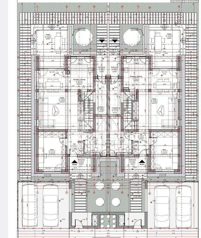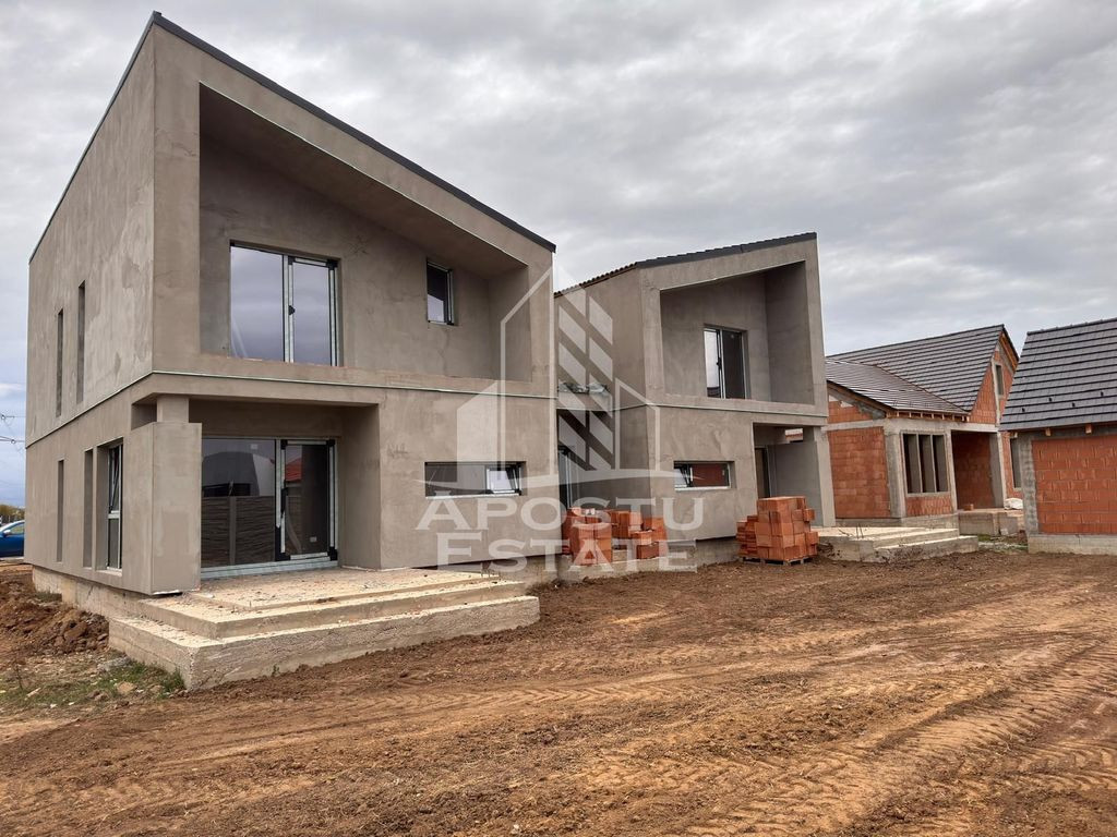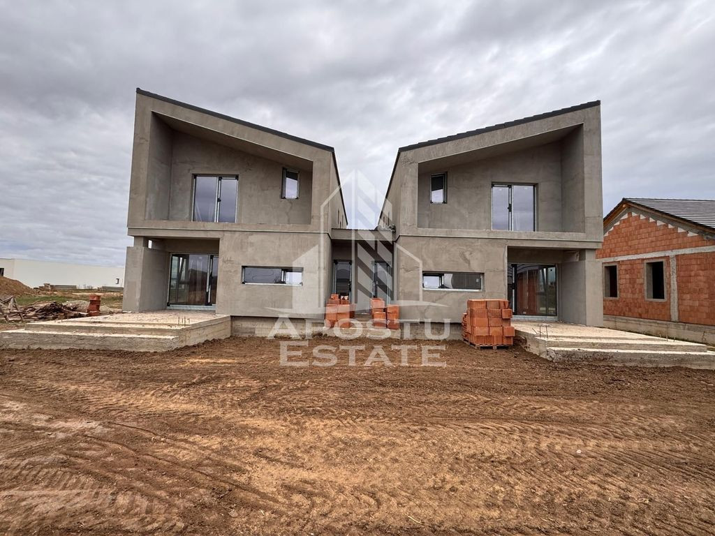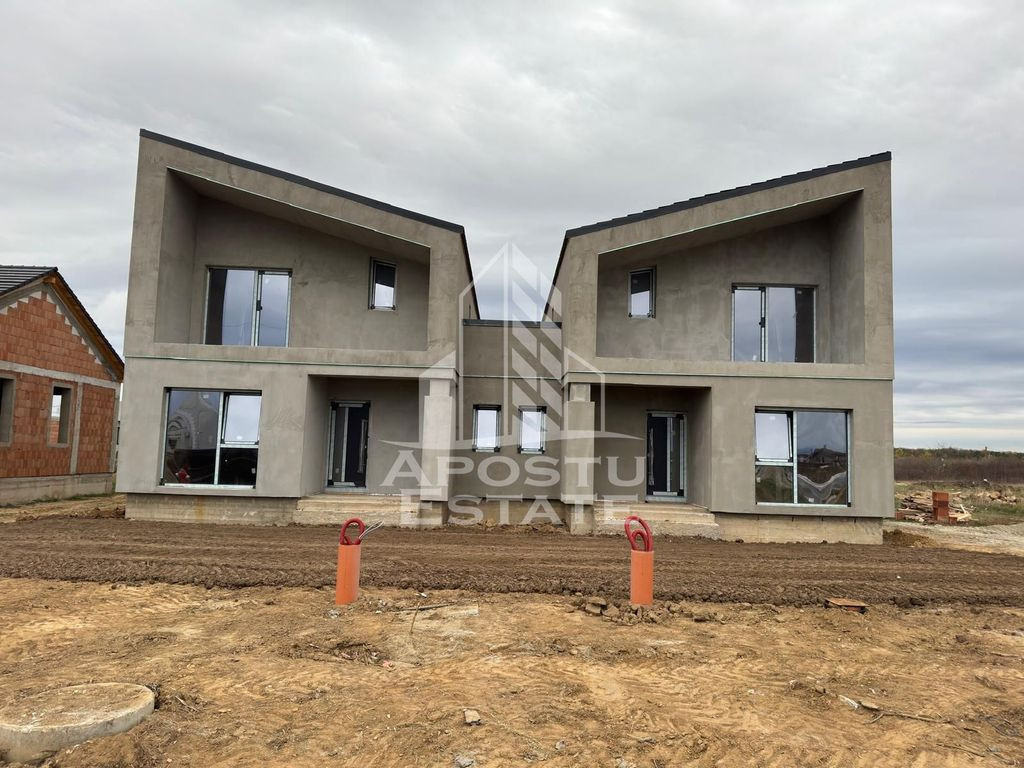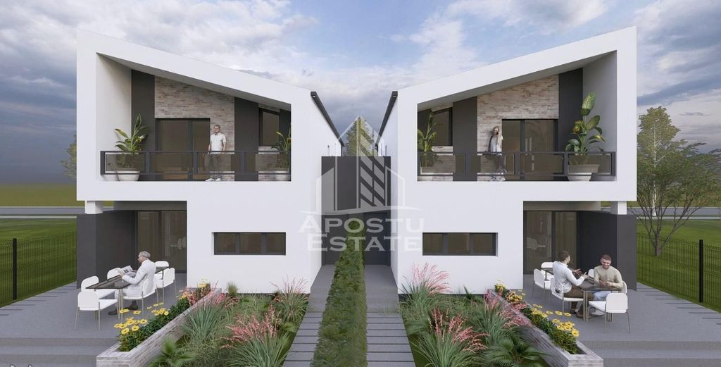 Apostu Estate va propune spre vanzare duplex despărțit prin cameră tehnică în Ghiroda. Regimul de înălțime P + 1E cu o suprafață utilă de 137mp. Imobilul este construit pe o suprafață de teren de 600mp, respectiv 300mp/parte. Compartimentare : Parter : Hol spațios Dormitor / birou Baie Bucătărie cu posibilitate de inchidere cu sticlă Living & dining luminos , cu ieșire direct pe terasă Cameră tehnică (acces din bucătărie cu ieșire în curte) Terasă Etaj: Hol Dormitor cu baie proprie si iesire spre balcon. Dormitor 2 cu baie proprie si iesire spre balcon. Detalii tehnice: Structura solidă din beton armat, zidăria interioară/exterioară cu bloguri de cărămidă POROTHERM WIENERBERGER 25cm. Termoizolația exterioară executată cu polistiren expandat EPS 80 15cm grosime. Tencuieli mecanizate , șape turnate mecanizat. 3 plăci turnate(placa cota 0,placa peste parter & placa peste etaj) Acoperiș țiglă Bramac antracit. Instalația sanitară & electrică fiind de calitate superioară. Încălzire în pardoseală pe ambele nivele. Geamuri Salamander 76 MD PREMIUM , 4anotimpuri , 44mm. (tripane,3 garnituri). Toate utilitățile: apă,gaz,curent. Beneficii: Zonă centrală , la 2minute de urcarea pe centură , în apropierea zonei de promenadă a canalului Bega. În proximitatea Campusului Universitar de Medicină și Farmaceutică , scoala modernă , bazin de înot. La 5 minute de mers pe jos de stația de transport în comun. Preț : 165.000€ TVA inclus-interior la rosu 210.000€ TVA inclus -finisat Oferim consultanta si solutii financiare prin colaboratorii nostri. Va asteptam cu drag la o vizionare! ID intern: CP2809076