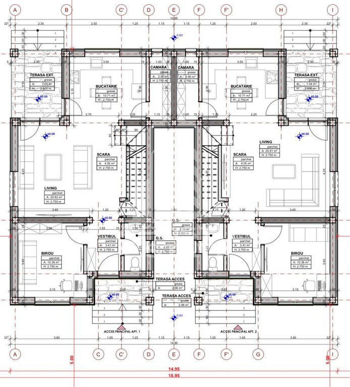 Apostu Estate are placerea de a va prezenta uhn duplex modern, construit in 2024, cu regim de inaltime P+1E+Pod, avand o suprafata utila de 107 mp si un teren aferent de 250 mp. Compartimentare: Parter: Hol de acces Dormitor Baie Casa scarii Bucatarie cu camara Living spatios Camera tehnica Terasa acoperita Etaj: Hol Baie Dormitor matrimonial cu baie proprie Doua dormitoare secundare Pod: Spatiu utilizabil de aproximativ 53 mp, ideal pentru depozitare Detalii tehnice: Constructie din caramida Cemacon 24 LM Termoizolatie exterioara cu polistiren EPS80 de 10 cm Incalzire in pardoseala marca TECE la parter si etaj Termostat in fiecare camera Tamplarie TROCAL cu profil de 7 camere si geam tripan Instalatie electrica din cablu masiv Climatizare Daikin la etaj Sistem de supraveghere video 360 grade Casa smart cu video interfon si sistem de alarma Automatizare poarta si aspersoare pentru gazon Priza exterioara pentru incarcarea masinilor electrice (curent trifazic) Pregatita pentru montarea panourilor solare Curte complet pavata Patru locuri de parcare (unul in curte si trei in fata proprietatii) Finisaje interioare: Prize si intrerupatoare marca Gewiss Tavane tencuite mecanizat la parter si izolate cu vata si rigips la etaj Obiecte sanitare marca TECE, incastrate in perete Parchet, gresie, faianta, mobilier bai si usi Porta Doors Clientii au posibilitatea de a personaliza finisajele interioare in varianta "la cheie", in baza unui buget stabilit de comun acord. La cerere, se pot pune la dispozitie poze din toate etapele constructiei. Se accepta toate tipurile de creditare bancara. Pentru mai multe informatii si pentru a programa o vizionare, va invitam sa ne contactati cu incredere. - LA ALB 220.000 euro (negociabil) - "LA CHEIE" 245.000 euro (negociabil)