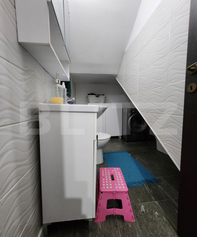Blitz ofera spre vanzare o casa tip duplex, situat intr-o zona frumoasa de case, cu acces privat. Casa are o suprafata utila de 116mp, regimul de inaltime este P+E+ pod cu suprafata pe intreaga locuinta, iar compartimentarea se prezinta astfel: -La parter avem:hol, baie, living, bucatarie cu debara inchisa, dormitor si accesul la terasa si curte. -La etajul 1 sunt: 3 dormitoare ( 1 dormitor matrimonial cu dresing si baie ) dintre care 2 cu acces pe balcoane si o baie mare cu geam de serviciu. Gradina este amenajata modern, gazon, terasa acoperita si spatiu pentru gratar, spatiu de depozitare scuze/ustensile. Duplexul beneficiaza de finisaje si de mobilier, electronice si electrocasnice si poate fi locuit imediat. Proprietatea beneficiaza si de 2 locuri de parcare ! Pentru mai multe detalii si stabilirea unei vizionari, va stam la dispozitie. Cod ofertă / ID BLITZ: P162802 Id intern: P162802