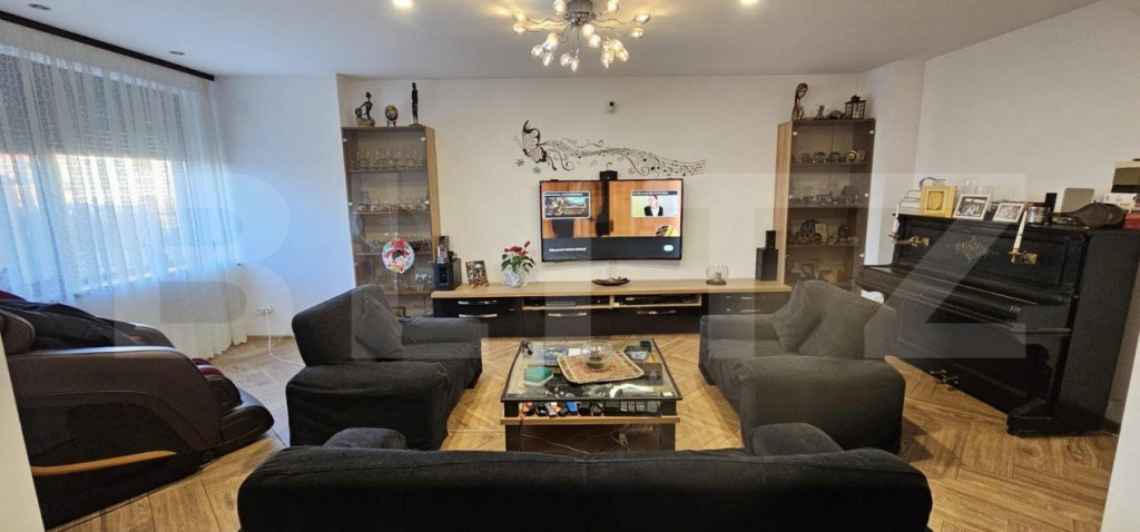Blitz va propune spre vanzare un apartament cu 4 camere decomandat situat intr-un cartier rezidential linistit cu drum privat. Acesta se afla pozitionat la parterul unei vile cu etaj construite in anul 2012 . Proprietatea masoara o suprafata utila de 111,25 mp si este compartimentat astfel: living generos amenajat cu semineu electric si cu bucatarie open space cu zona de luat masa, baie spatioasa cu cabina de dus , scara interioasa de stejar si balustarda moderna . La etaj avem 2 dormitoare spatioase cu dresing individual , ambele cu iesire pe balcon, o baie cu cabina de dus . De asemenea, imobilul dispune de centrala termica, incalzire prin pardoseala, geamuri termopan,cu jaluzele, usa din lemn masiv de stejar la intrare si un spatiu de depozitare sub scara interioara. In incinta proprietatii se afla o curte proprie de aprozimativ 100 mp amenajata cu spatiu verde ,pomisori, loc de piscina pentru copii, de asemenea exista si un spatiu comun destinat recrearii care beneficiaza de un foisor si un gratar, parcare comuna cu poarta electrica . Apartamentul se va preda mobilat partial si complet utilat cu electrocasnice de ultima generatie. Nu ezitati sa programati o vizionare. Cod ofertă / ID BLITZ: P135888 Id intern: P135888