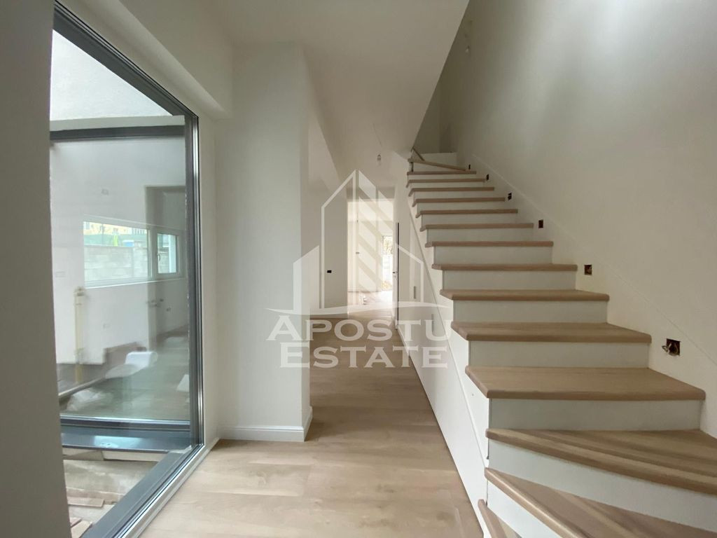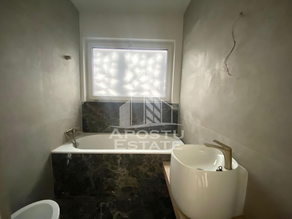 Apostu Estate va propune spre vanzare un duplex cu finisaje moderne, in zona Lipovei, aproape de punctele de interes precum: mijloace de transport, scoala, mall, magazine, piata. Duplexul are o suprafata utila de 144 mp si este compartimentat astfel: Parter: -carport 37,2 mp si acces acoperit 3,70 mp - hol intrare, 5,81 mp - camera tehnica spatioasa - 3,75mp - birou/garderoba - 6,24 mp - baie - 2,14 mp - living open space cu iesire pe terasa - 24,14 mp - bucatarie - 13,64 mp - loc de luat masa - 9,57 mp - spatiu depozitare sub scara - 1,56 mp - terasa 20 mp Etaj: - hol - 6,86 mp - dormitor cu baie proprie cu dus 17,18 mp + 6,44 mp - 1 dormitor - 16,92 mp - 1 birou - 9,66 mp - baie cu cada - 5,17 mp Oferim consultanta si solutii financiare prin intermediul colaboratorilor nostrii pentru a obtine cel mai potrivit tip de credit. Va asteptam cu drag la vizionare!