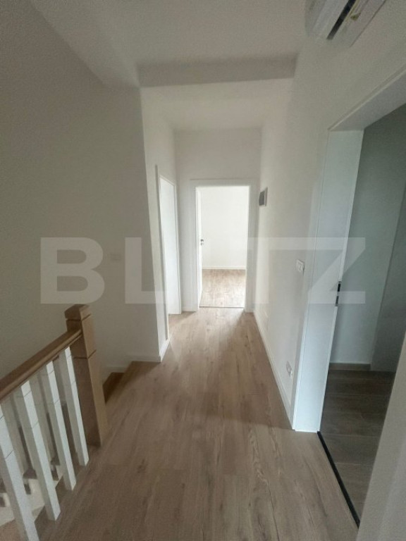 Vă prezentăm un duplex spațios și bine compartimentat, situat într-o zonă liniștită din Giroc, ideal pentru o familie care își dorește confort, funcționalitate și un spațiu generos. Imobilul dispune de 120 mp utili, amplasați pe un teren de 350 mp, cu un front stradal de 9 ml. Compartimentare: Parter: hol de acces, birou (ideal pentru work-from-home), baie, spațiu de depozitare sub scară, living luminos cu bucătărie open-space și ieșire către terasa de 22 mp. Etaj: 2 dormitoare secundare, un dormitor matrimonial cu baie proprie, baie suplimentară și acces la pod pentru depozitare. Dotări: Aer condiționat atât la parter, cât și la etaj Toate utilitățile racordate (apă, gaz, canalizare, curent) Finisaje de calitate și compartimentare eficientă O locuință ideală pentru cei care își doresc liniștea suburbiei, dar în proximitatea orașului. Cod ofertă / ID BLITZ: P145109 Id intern: P145109