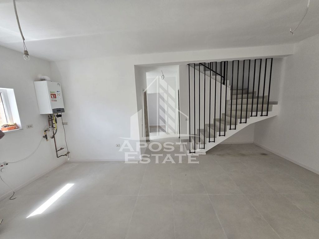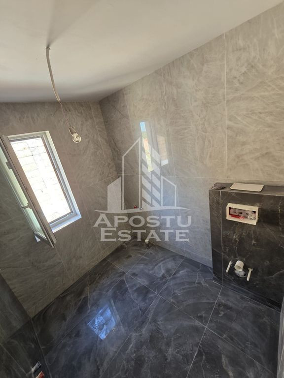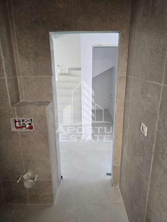 APOSTU ESTATE va ofera spre vanzare o jumatate de duplex situata intr-o zona in plina dezvoltare la asfalt, perfecta pentru cei care isi doresc o locuinta moderna, eficienta energetic si usor personalizabila. Suprafata utila este de 96 mp, iar terenul aferent este de 255 mp. Proprietatea este conectata la toate utilitatile: gaz, curent, apa si canalizare. Constructia este realizata din caramida de 25 cm, cu izolatie exterioara de 10 cm, oferind o performanta energetica ridicata. Sistemul de incalzire este in pardoseala si este alimentat de centrala proprie pe gaz. Tamplaria este moderna, cu geam tripan si profil de 7 camere, asigurand un confort termic si fonic sporit. Compartimentarea este inteligenta, dupa cum urmeaza: Parter: Camera versatila, ideala pentru birou sau camera de oaspeti Living spatios open-space de 27 mp cu bucatarie integrata Debara utila, pregatita pentru masina de spalat si uscator Acces direct din living catre terasa de 13 mp Etaj: Doua dormitoare spatioase, fiecare cu posibilitatea de amenajare a unui dressing Baie generoasa Proprietatea se preda la stadiul de semifinisat, cu posibilitatea de personalizare a finisajelor dupa propriile preferinte. Bugetul pentru finisaje este inclus in pret. Zona este in continua expansiune, avand acces facil catre centre comerciale, scoli si statii de transport in comun. Pentru mai multe detalii sau pentru a programa o vizionare, nu ezitati sa ne contactati. CP2254628