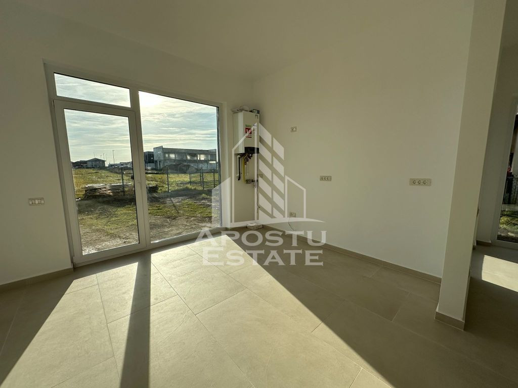 Descriere: De vanzare duplex modern, spatios si luminos, situat intr-o zona foarte linistita, la doar 100 m de asfalt. Proprietatea este amplasata strategic, in apropiere de centre comerciale (Lidl, Auchan), statie de autobuz, gradinita si alte facilitati esentiale. Caracteristici generale: Suprafata utila: 115 mp Teren: 263 mp, oferind un spatiu generos pentru amenajari exterioare Structura: - Constructie solida din caramida Nexe de 25 cm, izolata cu polistiren EPS 80 de 10 cm - Geamuri tripan Salamander cu profil cu 7 camere, pentru izolatie termica si fonica excelenta Dotari si utilitati: - Toate utilitatile: gaz, curent, apa si fosa septica de 2500 l - Parcare betonata pentru 2 masini - Incalzirea este realizata prin pardoseala de catre centrala proprie pe GAZ si are termostate de control al temperaturii in camere. Compartimentare bine gandita: Parter: - Zona utila dedicata pentru pantofar, masina de spalat si uscator - Baie de serviciu (3 mp) - Living modern si spatios, dotat cu scara de tip **Floating Steps**, pentru un design sofisticat - Bucatarie generoasa si foarte luminoasa, cu acces direct la: - Terasa acoperita, ideala pentru relaxare - Terasa neacoperita, perfecta pentru activitati in aer liber sau socializare - Sistem de aer conditionat prevazut pentru confort termic Etaj: - Dormitor matrimonial cu balcon, spatiu pentru dressing si baie proprie echipata cu cada -Dormitor secundar/birou, ideal pentru munca de acasa sau alte activitati -Al treilea dormitor, cu acces la baie proprie dotata cu dus Avantaje suplimentare: - Zona linistita, dar bine conectata cu punctele de interes - Apropiere de centre comerciale precum Lidl, Auchan si Peco - Teren generos pentru amenajare gradina sau spatiu de relaxare Aceasta proprietate moderna si bine compartimentata este perfecta pentru o familie care isi doreste confort, spatiu si acces facil la facilitati. Programati o vizionare pentru a descoperi toate avantajele acestei locuinte! CP2249472