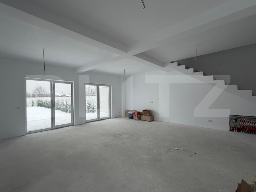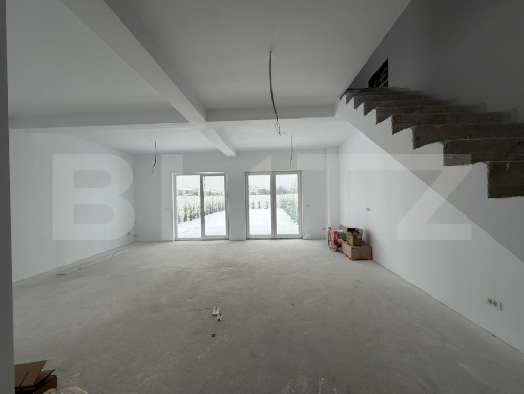 Blitz vă propune spre vânzare 1/2 duplex modern, situat într-o zonă liniștită și apreciată din Dumbrăvița. Imobilul este dispus pe două niveluri, are o suprafață utilă de 124 mp și beneficiază de un teren generos de 408 mp, oferind un echilibru ideal între confortul interior și spațiul exterior. Compartimentare: Parter: • Living spațios, cu zonă de dining • Bucătărie • 1 dormitor (ideal pentru birou sau cameră de oaspeți) • 1 baie Terasă, perfectă pentru momente de relaxare Etaj: • 3 dormitoare luminoase • 2 băi, dintre care una matrimonială Avantaje: • Compartimentare eficientă, ideală pentru o familie • Curte proprie generoasă Posibilitatea de personalizare a finisajelor, având la dispoziție un buget dedicat, astfel încât locuința să reflecte stilul și preferințele dumneavoastră Zonă rezidențială în continuă dezvoltare, cu acces facil către Timișoara Această proprietate reprezintă o oportunitate excelentă pentru cei care își doresc o locuință modernă, personalizabilă, într-o zonă premium. Cod ofertă / ID BLITZ: P160974 Id intern: P160974