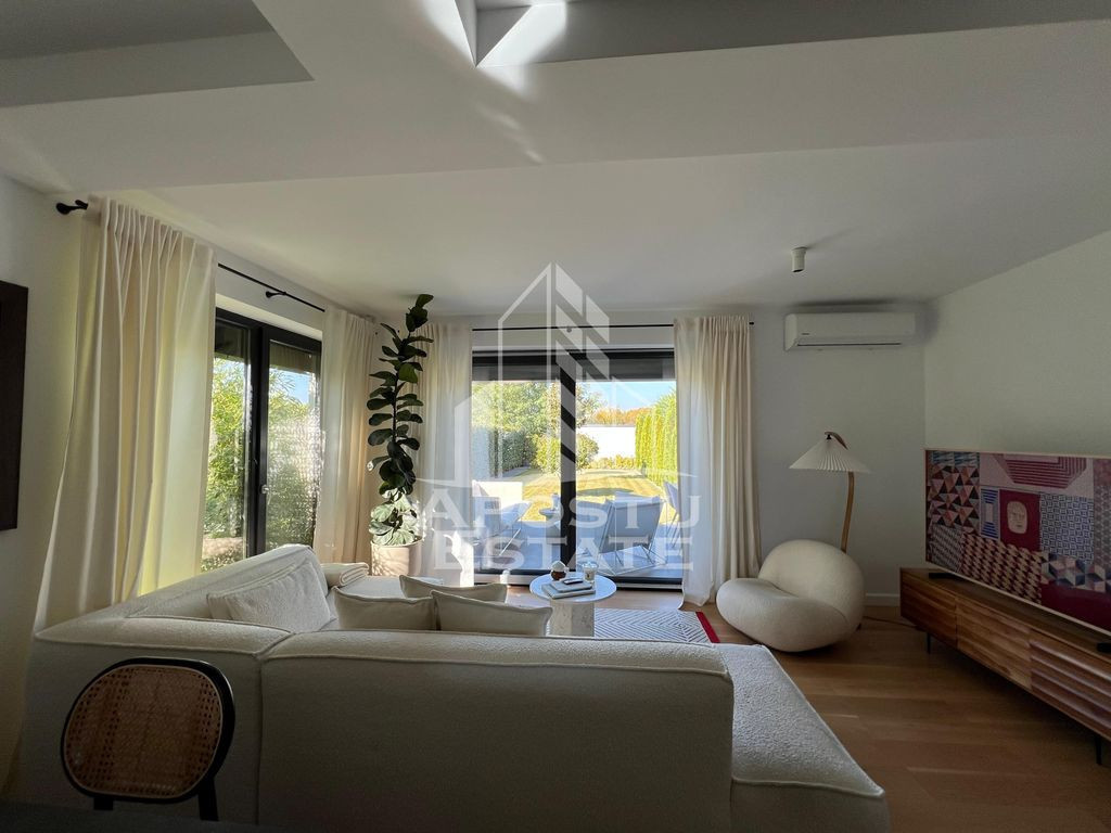 Apostu Estate va prezinta un duplex de lux situat in Dumbravita, intr-o zona exclusivista si linistita, in imediata apropiere a Parcului Terra. Proprietatea impresioneaza prin suprafata generoasa, finisaje de top si design interior elegant, fiind alegerea ideala pentru cei care apreciaza confortul si rafinamentul. Casa are o suprafata utila de 140 mp si este construita pe un teren de 432 mp, oferind un echilibru perfect intre spatiu interior si exterior. Proprietatea este compusa din 4 camere spatioase si luminoase, 2 bai complet echipate, dressing generos si 2 terase perfecte pentru relaxare in aer liber. Livingul amplu este dotat cu semineu functional, adaugand un plus de caldura si eleganta atmosferei. Duplexul este mobilat si utilat complet, cu piese de mobilier si electrocasnice premium, oferind un ambient rafinat, gata de locuit. Finisajele sunt realizate cu materiale de cea mai buna calitate, iar compartimentarea este excelenta, asigurand confort si functionalitate. Curtea privata ofera spatiu pentru relaxare, gratar sau activitati in familie, iar zona in care se afla proprietatea este una dintre cele mai apreciate din Dumbravita – aproape de parc, mijloace de transport, scoli si zone comerciale. Apostu Estate ofera consultanta bancara gratuita prin partenerii sai pentru obtinerea celui mai avantajos credit imobiliar. Pentru mai multe detalii si programarea unei vizionari, va stam cu drag la dispozitie.