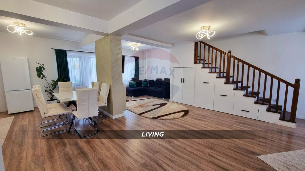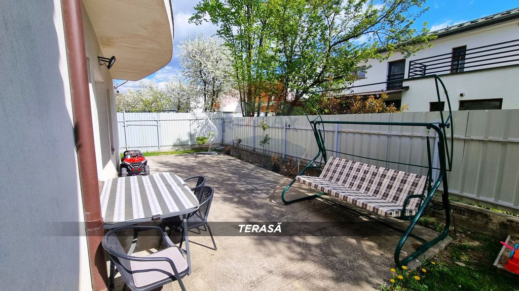 Îți dorești confortul unei case moderne, într-o zonă liniștită și foarte bine cotată? Pentru doar 800€ / lună, te poți bucura de un spațiu aerisit și primitor, situat pe strada Plugarilor. La parter, te întâmpină un living generos, open space cu bucătăria — locul perfect pentru relaxare și momente petrecute cu cei dragi. Șemineul adaugă un plus de căldură și atmosferă, iar zonele multiple de depozitare îți oferă organizarea de care ai nevoie. Tot aici se află și o baie. La etaj, găsești două dormitoare luminoase, o cameră suplimentară ideală pentru birou sau dressing și o baie spațioasă cu cadă dublă. Fiecare cameră are balcon, oferind lumină naturală și deschidere. Locuința este amenajată în stil contemporan, cu finisaje de calitate și dotări moderne: plită si cuptor electric, hotă, frigider nou, mașină de spălat vase (capacitate mare) și mașină de spălat rufe. Zona este liniștită, cu vecini buni, iar proprietatea beneficiază de poartă automatizată cu telecomandă și sistem de supraveghere video — pentru un plus de siguranță și confort. Dacă îți dorești mai mult decât o simplă chirie, ci un loc care să se simtă „acasă”, te invit să îl descoperi. Disponibil imediat. Pentru detalii sau vizionare, te aștept cu drag.