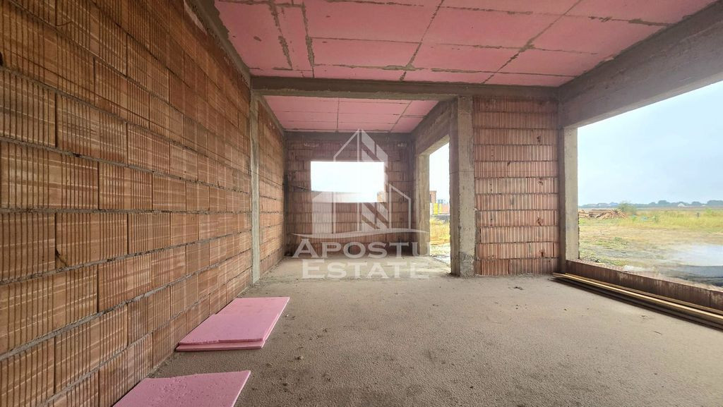 Apostu Estate va propune spre vanzare un duplex (unitate individuala – 1/2), complet finalizat "la cheie", amplasat intr-o zona linistita si usor accesibila – perfect pentru o familie sau ca investitie. Pretul afisat este pentru o unitate (1/2 duplex). Termen estimat de finalizare: iunie 2026. Bonus inclus: proiect complet de design interior – pentru ca viitorul proprietar sa se bucure cu adevarat de o locuinta predata "la cheie", pregatita pentru mobilare si locuire imediata. Caracteristici principale: Constructie din caramida Porotherm (25 cm grosime), cu pereti interiori de 12 cm si de 25 cm , tavan izolat cu polistiren extrudat de 2 cm , baile hidroizolate complet ; Suprafata utila totala de 74 mp, suprafata construita 96 mp; Teren aferent: 310.5 mp ; Curte libera de 210 mp, ideala pentru amenajarea unei gradini sau spatiu de relaxare; doua locuri de parcare; Case pe sol, fara subsol, perfecte pentru confortul termic si stabilitate. Facilitati si dotari: Proprietatea dispune de doua locuri de parcare si este construita pe sol, fara subsol, ceea ce asigura un confort termic sporit si stabilitate. Este racordata la utilitati: apa, curent trifazic, gaz si canalizare prin fosa septica de 5 mc. Sistemul de incalzire in pardoseala este pregatit cu 8 circuite, iar acoperisul este realizat din tigla de beton gri antracit, de calitate superioara si durabila. Sunt deja trase cablurile pentru camere de supraveghere si pentru benzi LED destinate iluminarii treptelor exterioare. Locatia ofera acces facil la multiple puncte de interes precum Kaufland, Jysk, Profi, Penny, Lidl si benzinarie ESO, precum si apropiere de scoala, gradinita, sala de sport si mijloace de transport in comun. Distanta fata de Timisoara este de doar 20 de minute cu masina, fiind ideala pentru navetisti. Aceasta proprietate reprezinta o oportunitate excelenta pentru achizitia unui duplex modern, intr-o zona bine conectata la facilitati esentiale.Termenul de finalizare este iunie 2026. Pentru mai multe detalii si pentru a programa o vizionare, nu ezitati sa ne contactati! Acceptam diverse forme de finantare, inclusiv credit bancar, si oferim consultanta specializata pentru obtinerea celui mai avantajos Credit Ipotecar sau credit Noua Casa. Oferta ID CP2118270
