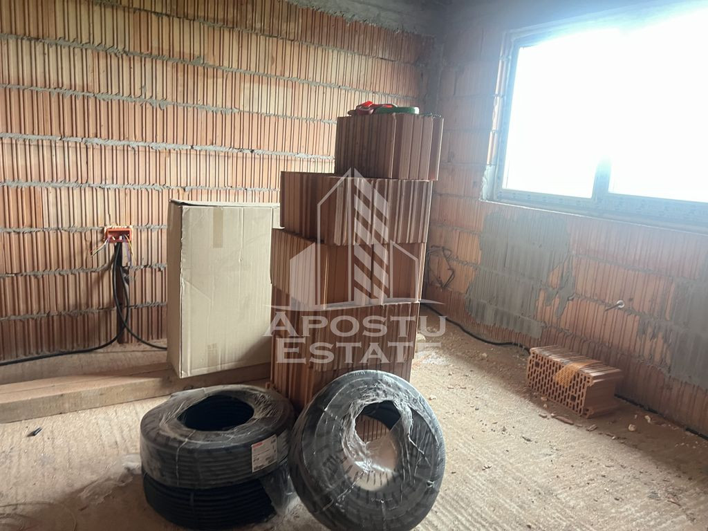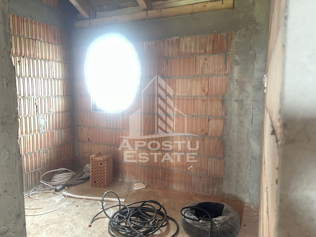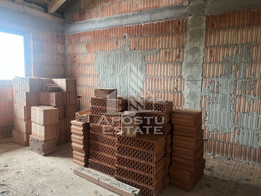 Agentia Imobiliara APOSTU ESTATE va propune spre vanzare un duplex, aflat in constructie, situat in Sacalaz. Finalizarea este estimata in iulie-august. Proprietatea are o suprafata utila de 95 mp cu o terasa de 9mp amplasata pe un teren de 312 mp. Compartimentare: • Parter: living cu bucatarie open space, baie, camera. • Etaj: 2 camere si o baie. Dotari si caracteristici: • Incalzire in pardoseala; • Acoperis din tigla; • Izolatie exterioara si interioara; • Front stradal 12 metri; • Utilitati: curent, apa, gaz, fosa septica. Va asteptam cu drag la vizionare! ID intern: CP2533954!