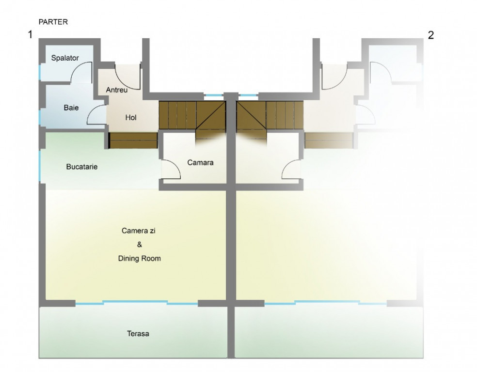 Duplex modern în Făget – confort, natură și eficiență energetică Prezentăm o locuință modernă tip duplex, amplasată într-una dintre cele mai exclusiviste zone ale Clujului – cartierul Făget. Situată într-un cadru liniștit, la doar 50 m de pădure și 1 minut de stațiile de autobuz, casa oferă un echilibru ideal între viața aproape de natură și accesul rapid la oraș. Suprafață utilă: 151,64 mp Teren: 214 mp( pentru o unitate locativa) Compartimentare: • Parter: living generos, bucătărie cu acces la terasă, baie, debara, spălătorie • Etaj: 2 dormitoare matrimoniale, fiecare cu baie proprie și dressing • Mansardă: dormitor, cameră de recreere, baie Construcție și dotări premium: • Cărămidă portanta Cemacom, izolație exterioară 15 cm, acoperiș cu izolație 25 cm din lână de lemn • Panouri solare 3.5 kW/unitate + invertor 5 kW • Pompă de căldură sau sistem solar pentru apă caldă + centrală pe gaz • Încălzire în pardoseală integrală TECE (garanție 12 ani) • Geamuri tripan securizate, acoperiș din tablă fălțuită • Exterior complet finisat: fațadă finalizată, sistem de irigare automat, spațiu verde, gard, zonă de parcare Utilități: apă, gaz, curent, canalizare proprie. O casă aproape pasivă, realizată cu atenție la detalii, eficiență și confort. Ideală pentru familiile care își doresc liniște, siguranță și proximitate față de natură, fără a renunța la accesul facil către oraș. Pret: 460000 euro+TVA