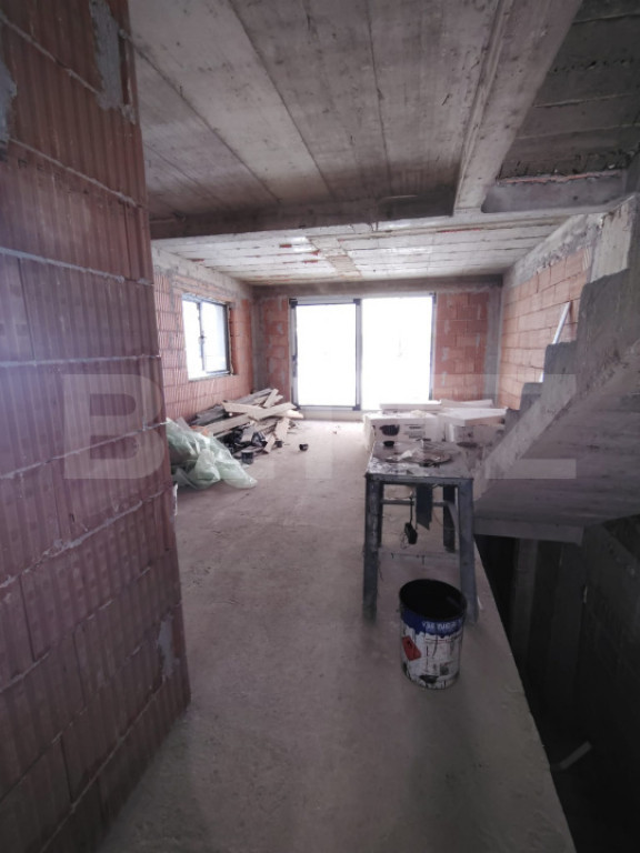 BLITZ oferă spre vânzare două unități într-un duplex, zona excelentă în cartierul Gheorgheni. Proiectul îmbină confortul designului arhitectural cu funcționalitatea modernă, fiind conceput pentru cei care își doresc confort superior într-o proprietate premium. Proprietatea dispune de o suprafață de 107 mp utili, cu suprafață liberă de curte și grădină de 150 mp, regimul de înălțime S+P+E+Etaj retras. Compartimentare atent gândită: Subsol (56 mp): scări sub care se află un spațiu mare ce poate fi folosit pentru depozitare, hol de acces, baie, spațiu pentru spălătorie/uscătorie, cameră tehnică 35 mp (spațiile sunt generoase si se poate regândi destinația lor); Parter: (73.75 mp): hol de acces, dressing, living spatios tip open-space cu bucătărie si dinning, baie, acces pe terasa generoasă, acces garaj; Etaj (65 mp): hol de acces, dormitor matrimonial cu dressing, baie proprie și logie, un dormitor secundar, 1 baie pe hol; Etaj retras (34 mp): 2 camere hobby, terasă panoramică. Detalii tehnice: zidarie din caramidă Porotherm de 25 cm, izolatie exterioară cu polistiren de 15 cm, geamuri tripan mari și luminoase, încălzire în pardoseală, centrală pe gaz, pereti finisati cu glet, instalatii sanitare si electrice pe pozitie, ușă metalică la intrare. Casa se predă la stadiul semifinisat, recepția se va face în 3-4 luni. Prețul listat este aferent unei unități locative și se adaugă TVA. Exterior: 1 garaj, 1 loc pentru parcare, grădină. Pentru mai multe detalii nu ezitati să ne contactați, vă așteptăm cu un interes aparte pentru a programa o vizionare și de a descoperi potențialul întregii proprietăți. Cod ofertă / ID BLITZ: P162523 Id intern: P162523