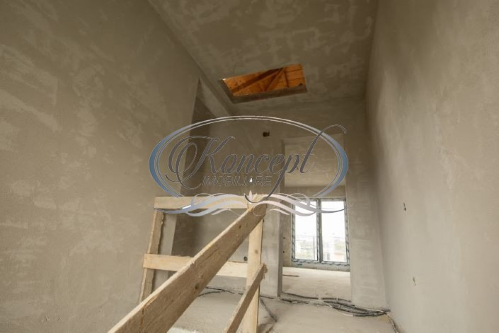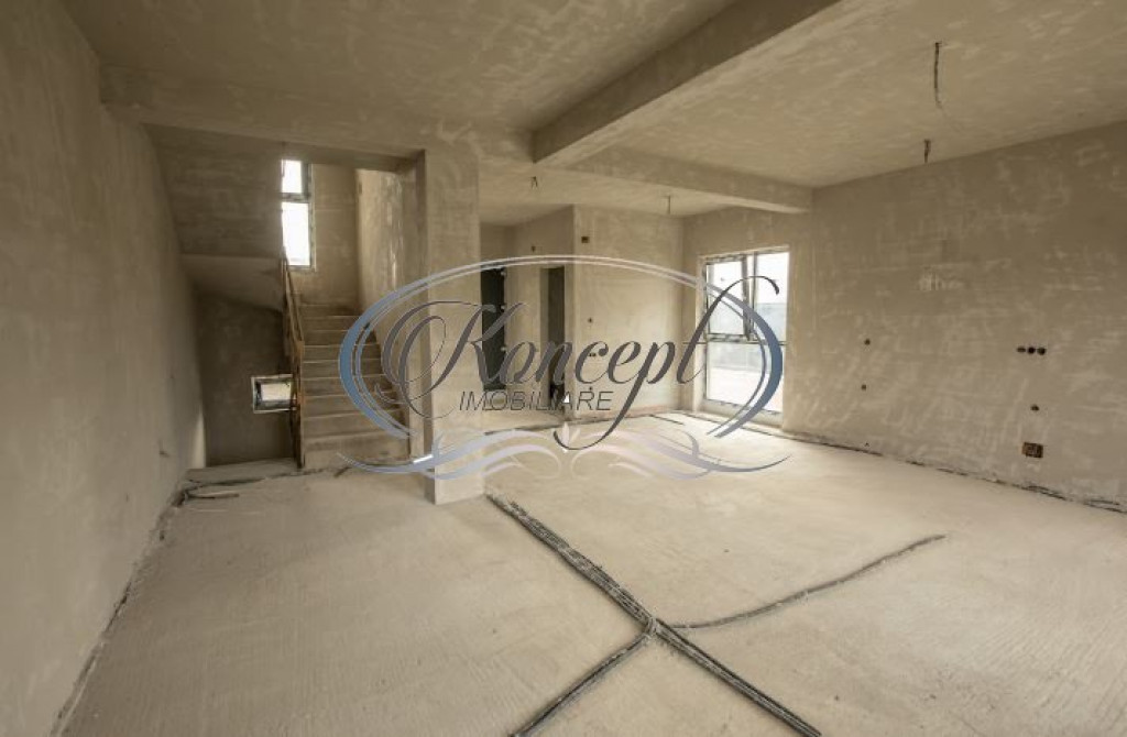 Koncept Imobiliare va ofera spre vanzare o casa de tip duplex, situata la intrarea in comuna Chinteni. Duplexul cu regim de inaltime S+P+E+Pod are suprafata utila de 182 mp + Pod si teren aferent de 300 mp si este compartimentat dupa cum urmeaza: Subsol- 2 spatii mari pentru depozitare; Parter - living open-space cu bucataria, baie, casa scarii si hol; Etaj - 3 dormitoare, 2 balcoane, 2 bai si hol. Aceasta proprietate se recomanda celor care isi doresc o casa calitativa fara compromisuri. Imobilul dispune de CF, iar vanzarea se face de pe persoana fizica, neimplicand costuri suplimentare de TVA. Pentru informatii suplimentare, programarea unei vizionari sau pentru a afla oferta noastra completa, nu ezitati sa ne contactati telefonic, prin e-mail sau la sediul agentiei noastre de pe str. Aviator Badescu nr. 19, Cluj-Napoca.