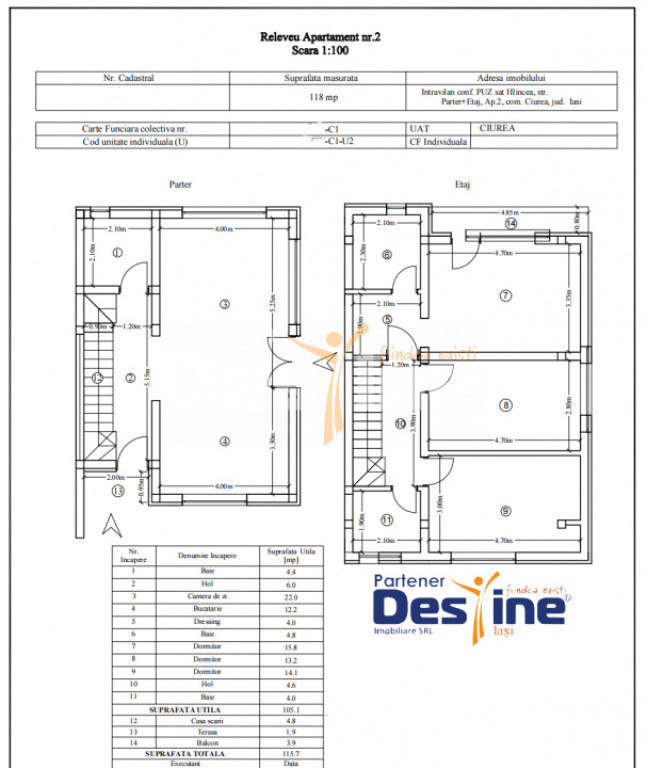 DESTINE IMOBILIARE vă prezintă spre vânzare: Duplex PREMIUM modern și practic - Hlincea Preț: 248.000 €uro Informatii utile despre proprietate: - Edificată în anul 2025 - Suprafață utila totală de 116 mp - Regim de înălțime: P+1+POD - Teren aferent proprietății: 390 mp - Hidroizolatie + termizolatie a fundatiei cu săpătură generală de 1.9 m - Platformă pentru acces auto, cu PORȚI ELECTRICE - Racordată la TOATE UTILITĂȚILE, inclusiv CANALIZARE Compartimentare: PARTER: LIVING tip OPEN SPACE cu bucătăria, baie cu GEAM, hol și ACCES spre curte. ETAJ: 3 dormitoare (cel matrimonial cu BAIE PROPRIE, DRESSING și BALCON), baie, hol și acces spre POD. POD: spatiu pentru depozitare cu PLACĂ DE BETON intre etaje, izolată cu polistiren extrudat de 10 cm. Avantajele cheie ale locuinței: - Centrală termică proprie PRIN CONDENSARE - Încălzire PRIN PARDOSEALĂ cu grup de amestec pe fiecare etaj - Termostate inteligente în fiecare încăpere - Tâmplărie din PVC cu geam termopan SALAMANDER - Tâmplărie interioară de la PORTA DOORS - Varuri și vopsele speciale marca SAN MARCO - instalație electrică si aparataj modular SCHNEIDER - Precablare pentru sistem de supraveghere video - PRIVELIȘTE PANORAMICĂ SUPERBĂ - ACCES RAPID, dublu - dinspre cartierul FRUMOASA sau prin MANTA ROȘIE Casa a fost construită in concordanță perfectă cu proiectul, având toate avizele și aprobările necesare la zi. Finisajele superioare, calitatea materialelor folosite si atenția la detalii sunt punctele forte ale proprietății. Alege o casă cu un dormitor matrimonial suficient de spațios, cu baie proprie, dressing, balcon și o priveliște panoramică superbă. Nu lăsa pe mâine, ce poți cumpăra astăzi. Vino la vizionare ! Toni Galu - 0736.84.84.88 Cod ofertă: P -4502 !!!Obține creditul dorit mai simplu ca niciodată!!! Nu mai alerga pe la toate băncile. Noi facem treaba în locul tău, absolut GRATUIT. Primești asistență personalizată de la dosar până la aprobare, indiferent de tipul de credit ales. Economisește timp și bani. Contactează-ne acum pentru o analiză gratuită! Id intern: P4502