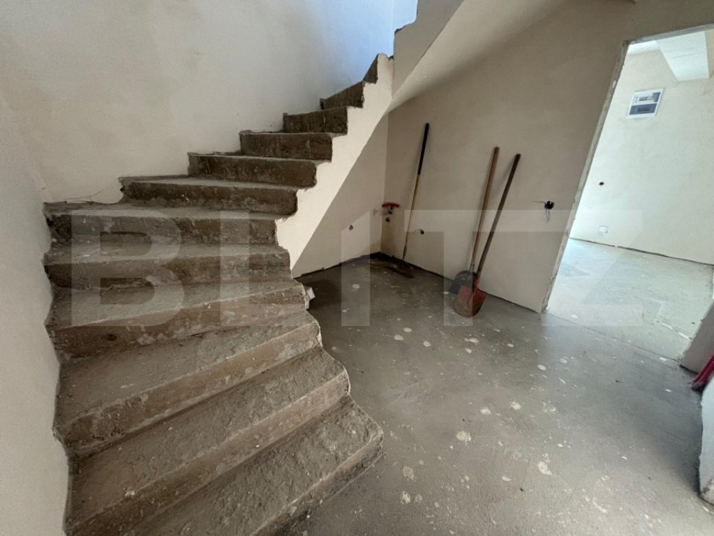 Blitz ofera spre vanzare un duplex pozitionat apropare de padure, in Tauti. Zona una este extrem de linistita, aproape de natura. Situat pe o strada principal, accesul este facil catre Cluj-Napoca fiind foarte aproape de centura ocolitoare Floresti. Casele au un regim de inaltime D+P+E si este compartimentat astfel: Demisol - garaj pentru doua masini, spatiu tehnic , casa scarii - suprafata utila de 57 mp Parter - hol, baie, birou, bucatarie + camera de zi si casa scarii - suprafata utila de 56 mp Etaj - doua dormitoare, doua bai , dressing si un balcon - suprafata utila de 48 mp Suprafata utila a unei unitati locative este de 161 mp si teren aferent de 350 mp. Finalizare imobil martie - aprilie 2024. Fiecare unitate locativă se preda la stadiul de semifinisat cu următoarele: pereți gletuiți, instalații sanitare si electrice la poziție, centrala termică cu incalzire prin pardoseala, ferestre termoizolante, ușa intrare, sape autonivelante, curte amenajată si împrejmuită. Cod ofertă / ID BLITZ: P93698 Id intern: P93698