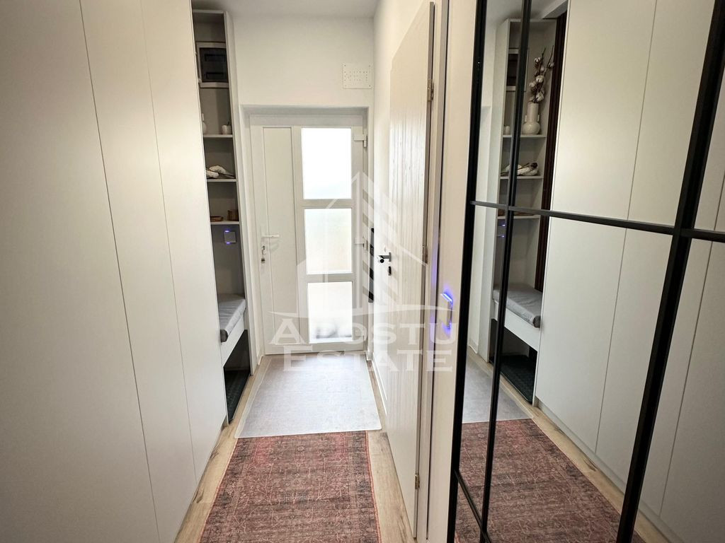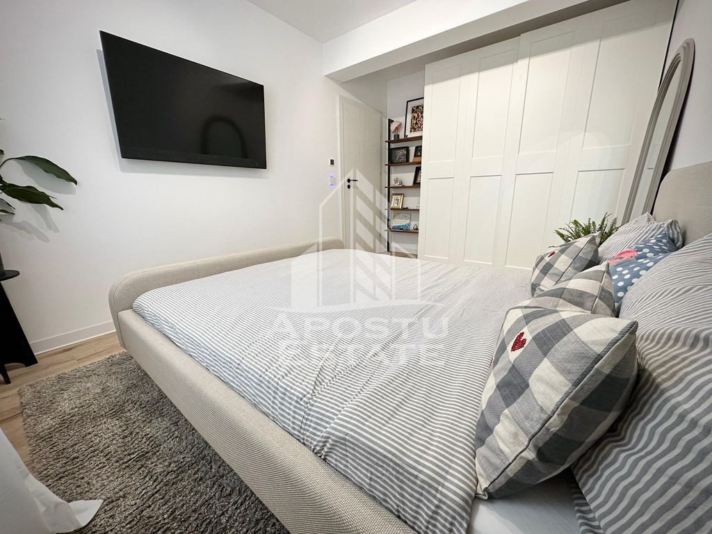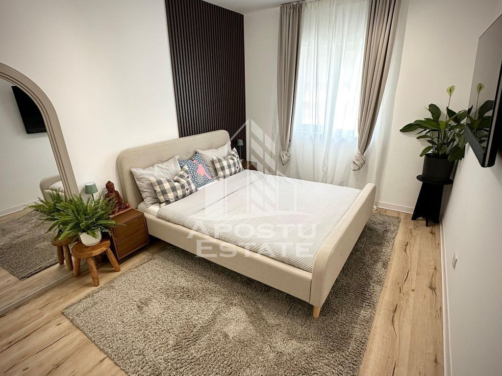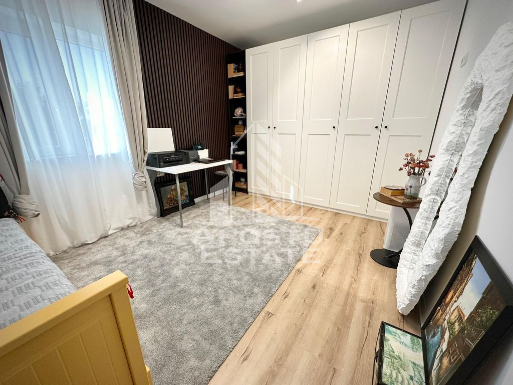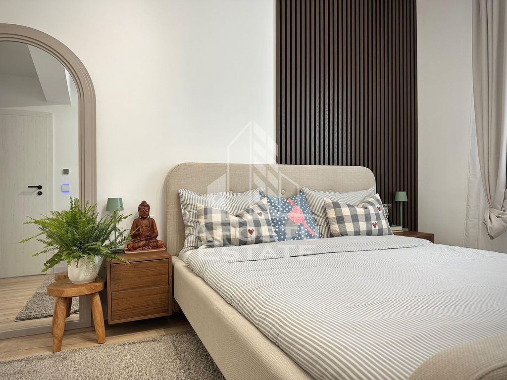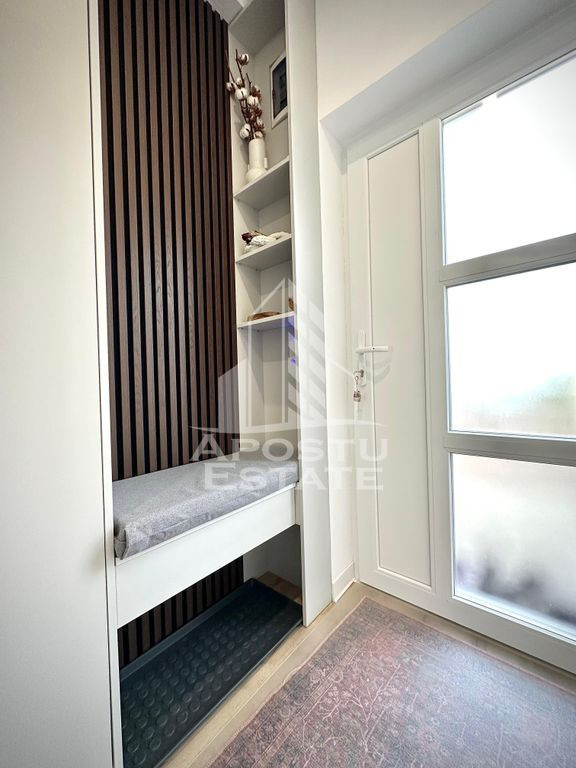 Apostu Estate va propune spre vanzare o jumatate de duplex smart,cu 3 camere,complet mobilat si utilat,in Covaci,la doar 5 min de Dumbrăvița. Duplex P+E finalizat în august 2024, suprafață utilă 74 mp, teren 200 mp, situat în zonă liniștită, cu toate utilitățile (apă, gaz, curent, canalizare, asfalt, fibră optică). Compartimentare: Parter: -hol. - living cu bucătărie open space. -baie. -spatiu de depozitare. Etaj: -2 dormitoare. -1 baie. -pod amenajat si izolat pt depozitare. Finisaje premium: -gresie și faianță Tempini Italia; -încălzire în pardoseală cu termostat Wi-Fi; -mobilier la comandă, blat de granit; -electrocasnice Beko, Haier, Bosch – toate în garanție. Casă Smart – control complet prin aplicație (iluminat, aer condiționat, supraveghere video Eufy, interfon). Curte amenajată: pergolă bioclimatică cu mobilier și iluminat, iaz decorativ, focar, sistem irigații automat, 3 locuri de parcare, gazon și arbori ornamentali. O proprietate amenajata modern,cu atentie la detalii pentru un confort optim. Pozitie excelenta,in zona linistita cu acces facil,strada asfaltata. Va oferim consultanta si solutii financiare prin colaboratorii nostrii! Va asteptam cu drag la o vizionare!