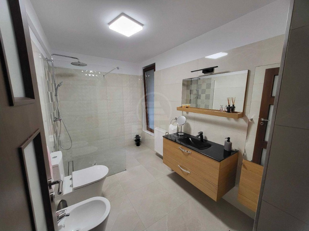 Numai acum puteti beneficia de noua oferta exceptionala! Va oferim spre vanzare casa duplex cu 5 camere , bucatarie, 3 bai in localitatea FLORESTI, zona SOMESULUI. Casa tip duplex monitorizata cu camere video remote, situata intr-o zona linistita, la doar 5 minute de Vivo, acces facil spre oras pe singura strada reabilitata conform standardelor europene cu 4 benzi de circulatie, de asemenea in imprejurimi se regasesc magazine, farmacie, baza sportiva si statiile mijloacelor de trasport in comun.Face parte dintr-un ansamblu rezidential cu acces securizat, exclusiv de case, cu parc propriu. Constructia este finalizata in anul 2010, suprafata totala fiind de 237 mp, utila 140mp, gradina 60 mp, curte 37 mp si balcon de 10 mp. Este dotata cu centrala termica proprie, tamplarie cu geam termopan, termoizolata cu polistiren de 10 cm, caramida de 25 cm. Acoperisul este realizata din tigla metalica, curtea este pavata si ofera posibilitatea de parcare a doua autoturisme. Casa pe exterior a fost renovata recent, schimbandu-se tabla de pe acoperis, burlanele, citernele si revopsirea fatadei. Pavajul a fost inlocuit in intregime.Afara, casa dispune de sistem de udare automat a gazonului si a celor 30 de tuia, plus un rulou pentru umbrire in spatele casei. Majoritatea mobilei din casa este lemn masiv, sanitarele si materialele folosite la finisaje sunt de cea mai buna calitate. Tote renovarile facute au fost din dorinta de a arata si rezista in timp. De asemenea, bucataria se poate uni cu livingul foarte usor, paretele dintre cele doua este de gips carton, astfel o noua camere devine utilizabila in loc la sala de mese.Compartimentare:-Parter: hol, baie cu geam si dus, sala de luat masa, bucatarie si living-Etaj: dormitor matrimonial cu baie proprie cu geam si cada, dressing si balcon, alte 2 dormitoare plus inca o baie/dressing.-Pod: A fost refacut, punandu-se izolatie de tip spuma poliuretanica 25 cm, apoi podit cu placi osb 25cm. Au fost recent adaugate 2 geamuri velux si pregatit pentru a putea fi locuit. Inaltimea podului este destul de mare, ceea ce ar rezulta in 2 camere destul de mari. Cu o investitie minima se poate prelungi scara si utiliza acest loc, insemnand inca aproximativ 60 mp locuibili. Daca va place aceasta oferta sau pentru alte oferte nu ezitati sa ne contactati telefonic sau la sediul nostru EDIL Floresti, Str. Eroilor, Nr. 25, Ap. 15 (et. 1), Floresti. ID 245645