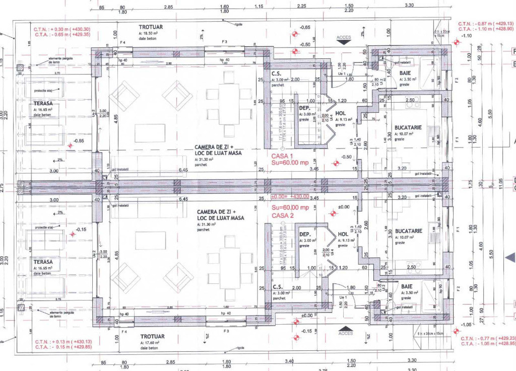 Imobilul oferit spre vânzare este o casă tip duplex, situată într-o zonă liniștită și verde, aproape de VIVO MALL și mijloacele de transport. Casa are o suprafață utilă de 119 mp și un teren de 235 mp. Este construită din cărămidă, cu fundație din ciment și izolație exterioară, iar acoperișul este de tip terasă circulabilă. Casa este dispusă pe trei nivele: la parter se află un hol de intrare, o baie cu geam, un spațiu de depozitare, o bucătărie separată, un living generos cu acces pe terasă. La etajul 1 sunt un hol, un dormitor matrimonial cu dressing și baie proprie, două dormitoare și o baie; iar la etajul 2 se află o terasă circulabilă cu vedere panoramică deosebită. Imobilul beneficiază de dotări moderne, precum centrală proprie, feronerie din PVC cu feronerie triplu stratificat, feronerie de termopan, ușă PVC, gradină și acces auto în curte. Dacă această ofertă vă interesează sau doriți să consultați alte oferte, nu ezitați să ne contactați telefonic sau să veniți la sediul nostru din Str. Eroilor, Nr. 25, Ap. 15 (et. 1), Florești. CA246113