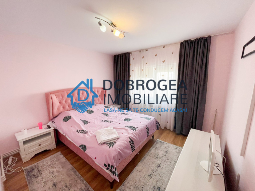 Agentia Dobrogea Imobiliare va prezinta spre vanzare un apartament cu 2 camere, decomandat, situat la etajul 2/4 in cartier E3. Imobilul are suprafata de 54 mp, este renovat si dispune de urmatoarele imbunatatiri: gresie, faianta, parchet, tamplarie cu geam termopan, usa metalica, aer conditionat. Imobilul se vinde total mobilat. Incalzirea apartamentului se face prin centrala termica pe gaz. Id intern: P897
