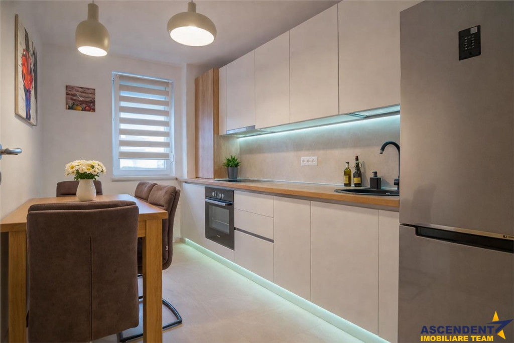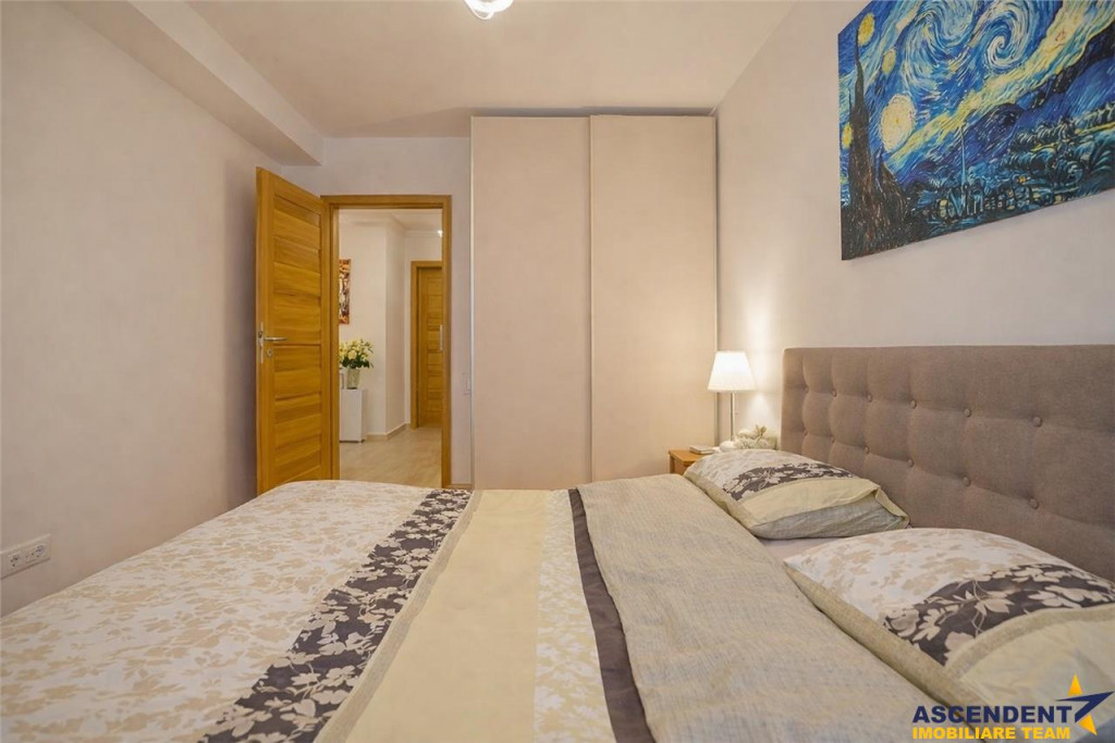 Comision cumparator: 2% TVA, din valoarea de tranzactionare Un apartament care imbina eleganta, confortul si lumina naturala intr-un mod rar intalnit, pentru cei care apreciaza un spatiu modern, aerisit si echilibrat. Proprietatea este decomandata, oferind un flux natural intre holul de acces, livingul primitor, dormitorul intim, bucataria inchisa, baia si spatiul de depozitare integrat, unde este amplasata si masina de spalat. Terasa mare, pe colt, devine un adevarat punct de atractie ndash; un loc ideal pentru relaxare, cafeaua de dimineata sau seri linistite, cu vedere deschisa spre Tampa. Cu o suprafata utila de 57 mp si o terasa de 16,37 mp, situat la etajul 7 din 9 si beneficiaza de orientare Sudndash;Est, ceea ce inseamna lumina naturala pe tot parcursul zilei si o atmosfera calda, primitoare. Interiorul este mobilat si utilat premium, cu piese din lemn de stejar care transmit stabilitate si rafinament, completate de electrocasnice de calitate superioara, toate in stare foarte buna. Canapeaua electrica adauga un plus de confort, iar finisajele din parchet Bauwerk din stejar in living si dormitor subliniaza atentia pentru detalii si durabilitate. Amenajarea contemporana, liniile curate si paleta cromatica echilibrata creeaza un spatiu care inspira calm si claritate, fiind ideal atat pentru locuire, cat si pentru investitie. Confortul termic este asigurat de incalzirea in pardoseala, oferind un nivel superior de confort in orice sezon, iar boxa de la subsol adauga un avantaj practic important. Optional, se poate achizitiona loc de parcare. Un apartament luminos, bine gandit si cu o energie aparte, care nu doar se vede bine, ci se simte ca acasa din primul moment. Detalii, fotografii suplimentare si alte oferte similare exclusive: www.ascendentimobiliare.ro