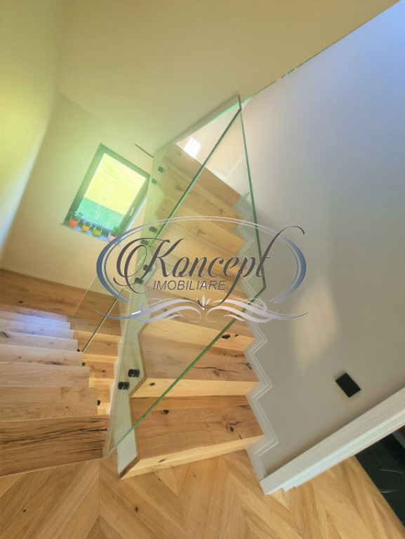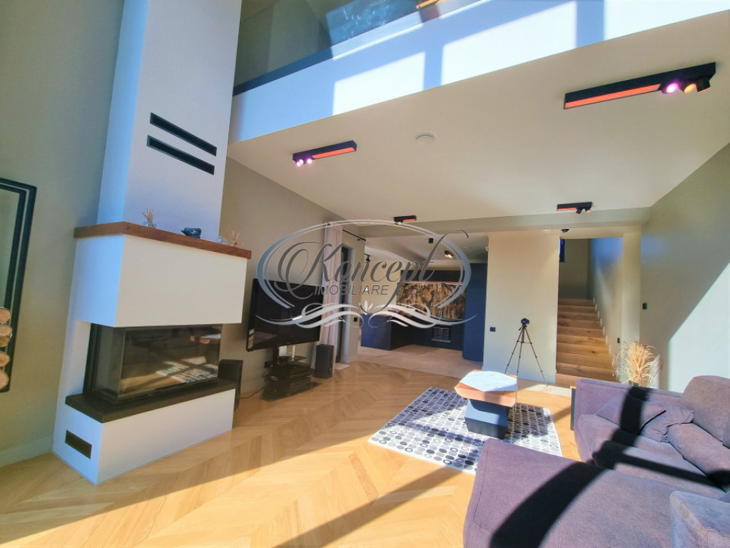 Koncept Imobiliare va ofera spre inchiriere o proprietate cu adevarat exclusivista, unica pe piata din Cluj-Napoca, amplasata in cartierul Terra Floresti – primul ansamblu rezidential din zona cu acces controlat, gandit special pentru familii care pun pe primul loc confortul, siguranta si calitatea vietii. Aceasta casa nu este doar o locuinta, ci o experienta de locuire la standarde superioare. Situata strategic, in imediata apropiere a marilor centre comerciale si cu acces rapid la autostrada A3, proprietatea combina avantajele unei zone retrase si linistite cu accesibilitatea excelenta catre oras. Cartierul Terra este organizat ca o comunitate moderna, unde accesul este restrictionat prin poarta securizata, strazile sunt asfaltate si bine iluminate, iar copiii beneficiaza de locuri de joaca si un mediu sigur. Totul este gandit pentru a oferi un stil de viata civilizat, confortabil si predictibil. Imobilul este o constructie cu design distinctiv, fatada ventilata si tehnologii de ultima generatie, ridicat si amenajat cu materiale premium si solutii arhitecturale de exceptie. Se inchiriaza complet finisat si mobilat, inclusiv bucataria, livingul, baile si cele doua dormitoare twin, iar dormitorul matrimonial beneficiaza de o pozitionare complet separata, fara pereti comuni cu alte incaperi – un avantaj rar pentru cei care cauta liniste si intimitate. Spatiul este organizat excelent pe trei niveluri. La parter se afla un living spectaculos, cu o inaltime libera de 6 metri si perete cortina din sticla orientat spre est, care ofera lumina naturala din plin si deschidere catre curtea amenajata. Tot la parter se regaseste bucataria complet echipata, alaturi de o camera separata folosita ca dining, ideala pentru mesele in familie sau intalniri mai formale. Etajul ofera un al doilea living – o zona de citit sau relaxare gandita ca un spatiu distinct de destindere, un dormitor matrimonial separat, fara pereti comuni cu alte incaperi si 2 dormitoare gemere, in timp ce mansarda gazduieste un open space versatil, ideal pentru birou, zona de joaca sau hobby room, adaptabil in functie de nevoile chiriasului.Curtea proprie, de dimensiuni optime, este atent amenajata si ofera zona de barbeque, masa, scaune, umbrela si intimitate totala – perfecta pentru relaxare in aer liber. Pe partea de dotari tehnice, casa dispune de sistem complet de automatizari smart home – iluminat, incalzire, climatizare si acces controlabile de pe orice device mobil. La exterior se regasesc sistemul automat de irigatie, robotul pentru tuns gazonul, iluminatul ambiental inteligent si sistemul de curatare automata a geamurilor.Interiorul este finisat cu materiale naturale precum granit, onix, travertin si stejar canadian. Semineul functional, jaluzelele exterioare electrice, climatizarea pe fiecare camera si electrocasnicele de top marca Miele completeaza tabloul unei proprietati premium.Aceasta casa se adreseaza unei familii moderne, cu exigente ridicate, care isi doreste mai mult decat o simpla locuinta – un camin care imbina perfect designul, tehnologia si confortul.Pentru detalii complete, pentru programarea unei vizionari sau pentru a afla oferta noastra actualizata, va invitam sa ne contactati telefonic, prin e-mail sau direct la sediul nostru de pe Str. Aviator Badescu nr. 19, Cluj-Napoca. Id intern: P11534