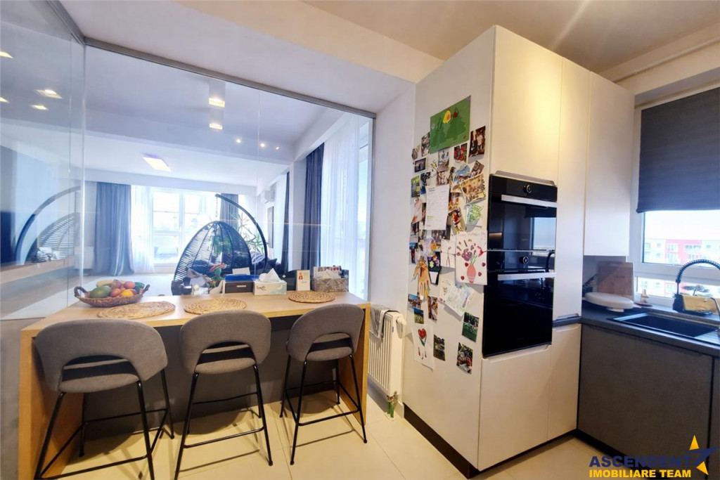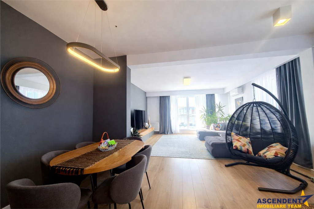 Comision chirias 50% TVA din contravaloarea unei chirii lunare, o singura data Ascendent Imobiliare Va prezinta un penthouse exclusivist, unde spatiul, lumina si privelistea se imbina perfect intr-o experienta de locuire la superlativ. Situata in Avantgarden Bartolomeu, aceasta rezidenta impresioneaza prin 120 mp utili, structura decomandata si o terasa deschisa de 40 mp, cu vedere superba catre munti si Varful Postavarul. Livingul generos este scaldat in lumina naturala pe tot parcursul zilei, cu zona de relaxare si acces direct pe terasa ndash; locul ideal pentru dimineti cu cafea si seri memorabile. Bucataria inchisa este delimitata elegant cu pereti de sticla glisanta, include zona de dining tip bar si este complet utilata si echipata cu electrocasnice incorporate: plita, cuptor, frigider, cuptor cu microunde, masina de spalat vase, hota etc Holul de aproximativ 10 mp este amenajat inteligent cu dressing cu oglinzi si spatii ample pentru depozitare, plus zona dedicata pentru masina de spalat rufe si uscator. Apartamentul dispune si de: baie cu dus tip walk-in camera pentru copii dormitor matrimonial cu pat king size, zona de lucru amenajata cu birou si baie proprie cu cada si bideu Proprietatea beneficiaza de loc de parcare si se remarca printr-un design elegant, in culori calde, cu un vibe pozitiv si rafinat. Zona ofera infrastructura excelenta, cu acces rapid la supermarketuri (Lidl, Penny, Pepco, Jysk), restaurante, gradinite, parcuri si zone verzi, la doar 5ndash;10 minute de centrul istoric. Va doresc o zi cu soare in suflet! Consilier specializat pe oferta: doamna Gilda Georgescu Telefon/WhatsApp: 0722 807 623 Detalii, fotografii suplimentare si alte variante similare exclusive: www.ascendentimobiliare.ro