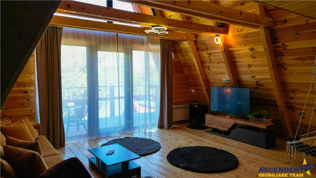 Comision cumparator: 2% TVA, din valoarea de tranzactionare. ASCENDENT IMOBILIARE propune spre vanzare o unitate individuala tip A Frame situata in zona pitoreasca Moieciu de Jos, Brasov, intr-un cadru natural spectaculos, cu privelisti asupra muntilor si a imprejurimilor. Proprietatea se afla pe un teren generos de 1200 mp, cu curte individuala si spatiu liber in proprietate, oferind atat confort si intimitate, cat si posibilitatea de a petrece timp in aer liber intr-un decor natural deosebit. Va invitam sa experimentati o vizionare initiala, din locatia unde va aflati, chiar acum, prin accesarea a filmului de prezentare: Film prezentare: https://www.youtube.com/watch?v=_c2_rVbGvM8 Imobilul a fost finalizat in 2025, construit din beton armat si lemn, combinand rezistenta si durabilitatea cu caldura si estetica materialelor naturale. Suprafata construita este de 63 mp, cu suprafata utila de 71 mp, iar amprenta la sol este de 73 mp, oferind un spatiu eficient si functional, perfect pentru un trai modern in mijlocul naturii. Locuintele beneficiaza de bucatarie mobilata si utilata, baie complet echipata, dormitor si spatii de depozitare, toate gandite pentru confortul zilnic. Fiecare detaliu al casei reflecta atentia pentru calitate si confort: ferestre termopan PVC Veka, izolare interioara, pardoseala din dusumea import, plansee din lemn, balcon si acoperis din tabla Novatik, toate acestea creand un ambient cald si primitor. Casele sunt mobilate si utilate complet, fiind dotate cu aer conditionat, electrocasnice moderne si mobilier de calitate, astfel incat cumparatorul poate intra imediat si se poate bucura de un trai confortabil fara alte investitii suplimentare. Pozitionarea proprietatii ofera liniste, intimitate si acces facil catre principalele atractii turistice ale zonei Bran-Moieciu, fiind ideala atat pentru locuire permanenta, cat si pentru investitie in turism sau inchiriere pe termen scurt. Aceasta reprezinta o oportunitate unica de a achizitiona o proprietate moderna, complet utilata si mobilata, intr-o zona deosebita, cu potential turistic ridicat si un cadru natural deosebit. Desigur ca particularitatea ofertei si detaliile particulare, ce o configureaza, invita la cunoasterea in detaliu! Consilier dedicat acestei oferte: domnul Florin Tonu 0721 218 273 Detalii, fotografii suplimentare si alte variante exclusive : www.ascendentimobiliare.ro