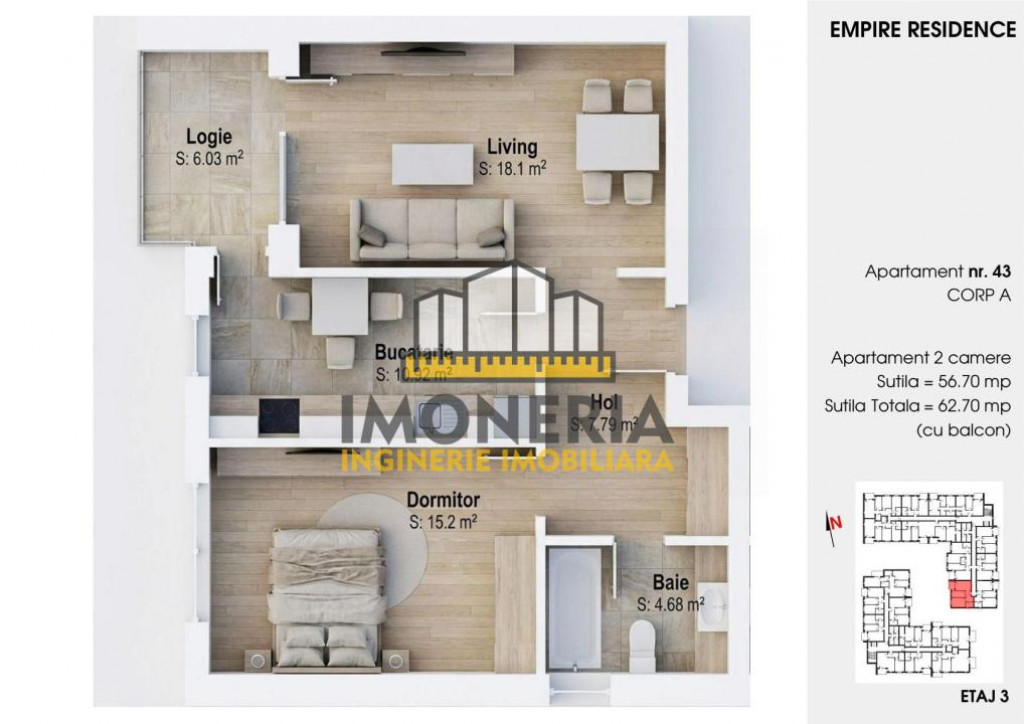 Cauți un apartament modern, eficient compartimentat și amplasat într-o zonă liniștită, dar aproape de tot ce contează? Empire Residence Tornadei 2 continuă tradiția proiectului Empire Tornadei 1, deja finalizat și locuit, oferind același nivel de calitate, confort și atenție la detalii. Situat într-o zonă rezidențială liniștită, cu regim mic de înălțime, proiectul oferă apartamente moderne, bine compartimentate, cu camere luminoase și finisaje de calitate. E locul potrivit pentru cei care își doresc un apartament complet decomandat, într-un bloc nou, cu bucătărie separată, logie generoasă și acces facil către Metrou 1 Decembrie 1918 – aproximativ 13 minute de mers pe jos. Amplasarea asigura acces facil, in mare parte practicabil pe jos, catre: - metrou 1 Decembrie 1918: 1.1 km - STB linii 619, 627, N111, 19, 27, 40: 900 m - Parc sportiv Lunca Cetatii: 450 m - magazine rapide si supermarket-uri ( Fro, Mega Image, Lidl): de la 200 m - hypermarket-uri Kaufland, Auchan: de la 1.8 km - Piata Trapezului: 1.1 km - gradinite, scoli, licee: de la 800 m Apartamentele cu 2 camere disponibile in acest imobil sunt gândite inteligent, pentru a oferi confort real și funcționalitate. Dispunerea spațiilor permite o separare clară între zona de zi și cea de noapte, iar lumina naturală abundă în toate încăperile. -Living generos cu acces direct către logie, perfect pentru relaxare -Bucătărie lată și separată, cu ieșire către logie (ideală pentru aerisire și servirea mesei) -Dormitor spațios și luminos, cu acces facil către baie și zonă de dressing -Hol larg, cu spații de depozitare bine integrate -Baie complet echipată, finisată modern -Posibilitate achiziție boxă pe etaj -Loc de parcare disponibil la demisol (achiziție separată) Un apartament potrivit pentru o persoană activă, un cuplu tânăr sau pentru investiție – datorită poziționării și compartimentării sale eficiente. Finisaje și dotări premium: -Încălzire prin pardoseală, pentru un confort termic uniform -Centrală proprie în condensare ( Ariston sau echivalent) -Tamplărie PVC tripan Veka – Low E, 4 Seasons, 7 camere -Pardoseli din parchet laminat, gresie și faianță -Uși interioare MDF, ușă metalică de acces otel antiefractie -Balcon / logie finisată cu gresie tip deck și balustradă din sticlă securizată -Preinstalare pentru aer condiționat -Circuit electric independent plita inductie -Contorizare individuală pentru toate utilitățile -Apartamentele se predau complet finisate, gata pentru mobilare și mutare Despre imobil: -Construcție nouă – DS + P + 3E -Structură din beton armat și zidărie tip Porotherm -Zidarie exterioara si intre apartamente : caramida tip Porothem 30 cm -Izolație termică polistiren expandat 15 cm + fațadă placată tip Klinker -Lift modern 6 persoane, finisaje din granit și inox pe casa scării -Parcare subterană In galeria foto regasesti mai multe tipuri de apartamente disponibile in imobil: Apartament B13: 112 000 Euro + TVA - Avans 80% | 120 000 Euro + TVA - Avans 50% | Pret 123 000 Euro + TVA - Avans 20% Apartament A12: 108 000 Euro + TVA - Avans 80% | 111 000 Euro + TVA - Avans 50% | Pret 114 000 Euro + TVA - Avans 20% Apartament A13 : 118 000 Euro + TVA - Avans 80% | 121 000 Euro + TVA - Avans 50% | Pret 124 000 Euro + TVA - Avans 20% Apartament A22: 121 000 Euro + TVA - Avans 80% | 124 000 Euro + TVA - Avans 50% | Pret 127 000 Euro + TVA - Avans 20% Apartament A38: 112 000 Euro + TVA - Avans 80% | 115 000 Euro + TVA - Avans 50% | Pret 118 000 Euro + TVA - Avans 20% Apartament A43: 117 000 Euro + TVA - Avans 80% | 121 000 Euro + TVA - Avans 50% | Pret 124 000 Euro + TVA - Avans 20% Apartament A46: 112 000 Euro + TVA - Avans 80% | 115 000 Euro + TVA - Avans 50% | Pret 118 000 Euro + TVA - Avans 20% Apartament B25 : 116 000 Euro + TVA - Avans 80% | 119 000 Euro + TVA - Avans 50% | Pret 122 000 Euro + TVA - Avans 20% Apartament B33: 115 000 Euro + TVA - Avans 80% | 118 000 Euro + TVA - Avans 50% | Pret 121 000 Euro + TVA - Avans 20% Lista completa de apartamente disponibile in imobilul Empire Residence Tornadei 2 o poti consulta pe imonera.ro ???? Dacă rezonezi cu cele descrise, hai să discutăm detaliile și să programăm o vizionare la fața locului. Reprezentăm dezvoltatorul în mod direct și oferim consultantă completă (tehnică, imobiliară, financiară) — cu comision 0% pentru cumpărător. Id intern: P154270
