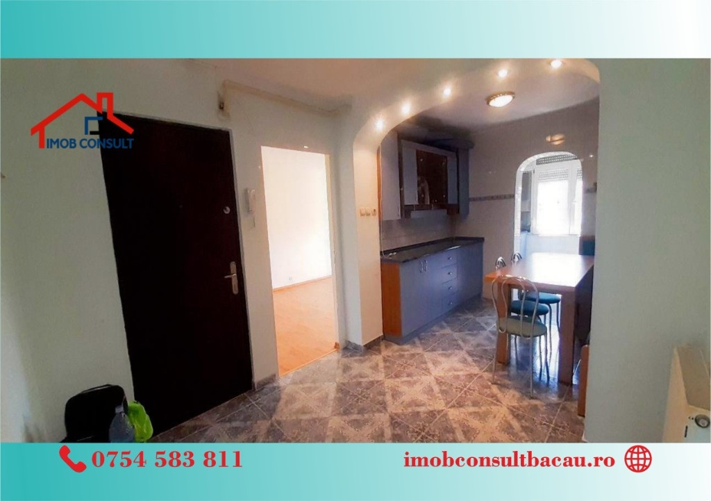 Echipa Imob Consult Bacau va prezinta spre vanzare un apartament cu doua camere decomandate, situat în zona 22 Decembrie – perfect pentru locuit sau investiție în închiriere! Apartamentul se afla la etajul 2, este prevazut cu balcon inchis, blocul fiind izolat termic. Detalii esențiale: - 2 camere decomandate; - Hol generos; - Suprafață utilă: 50 mp; - Balcon inchis; - Etajul 2; - Centrală termică proprie; Zonă cu acces rapid la farmacii, stații de autobuz, școli și alte puncte de interes. Ideal pentru: – Investiție cu randament excelent; – Locuință personală confortabilă; – Regim hotelier sau birou. Sună acum pentru detalii și vizionare: - Cosmin: 0754 583 811; - Corina: 0740 288 297, sau vizitează-ne la sediul IMOB CONSULT Bacău, Str. Banca Națională nr. 27, intersecția cu Neagoe Vodă.